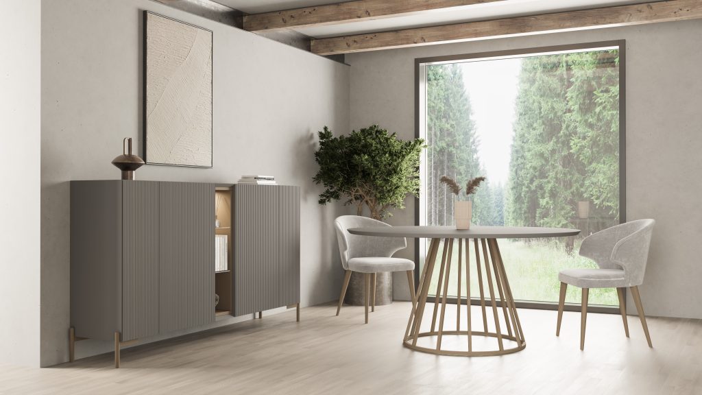 La línea Klassic combina líneas rectas y bases metálicas para un diseño sofisticado y atemporal. Sus puertas con relieves y detalles en aluminio crean un contraste elegante que aporta estilo y profundidad. Pensados para el hogar, estos muebles ofrecen funcionalidad y durabilidad sin perder el encanto del diseño.