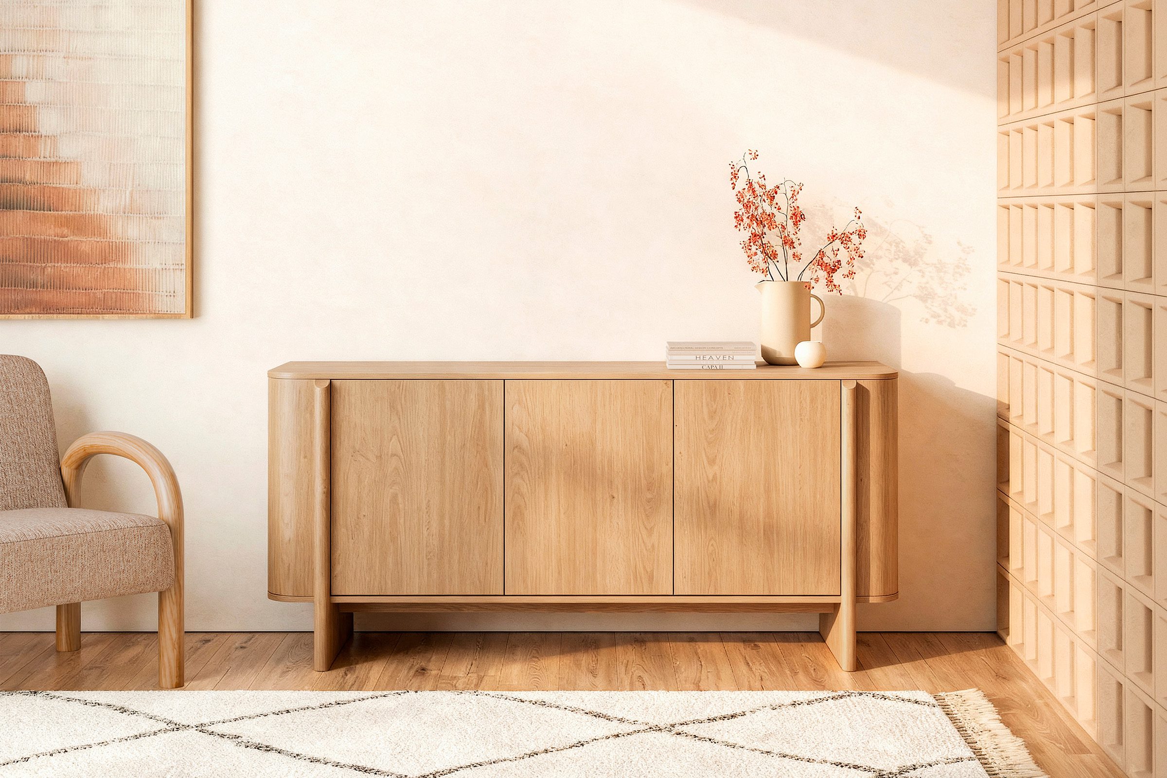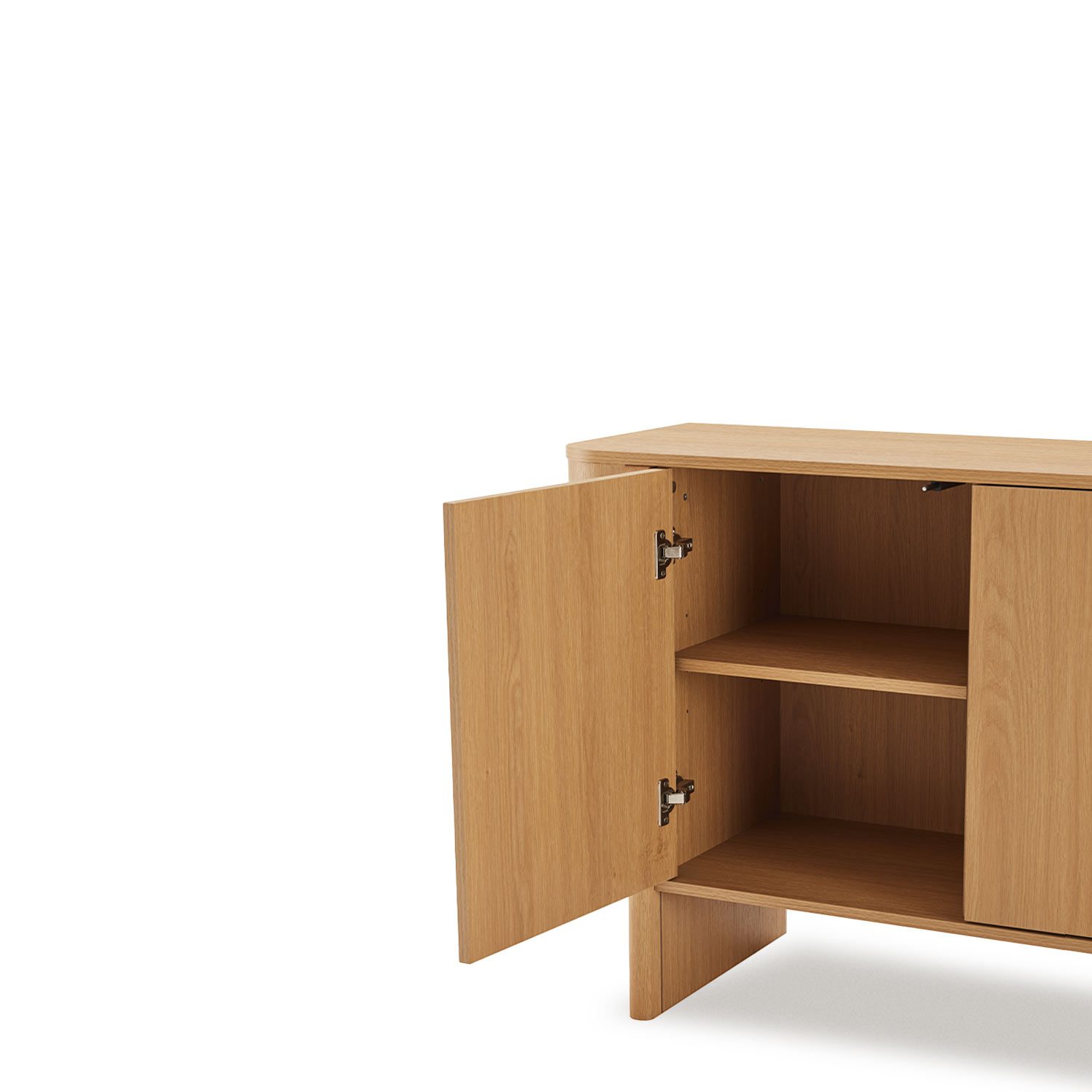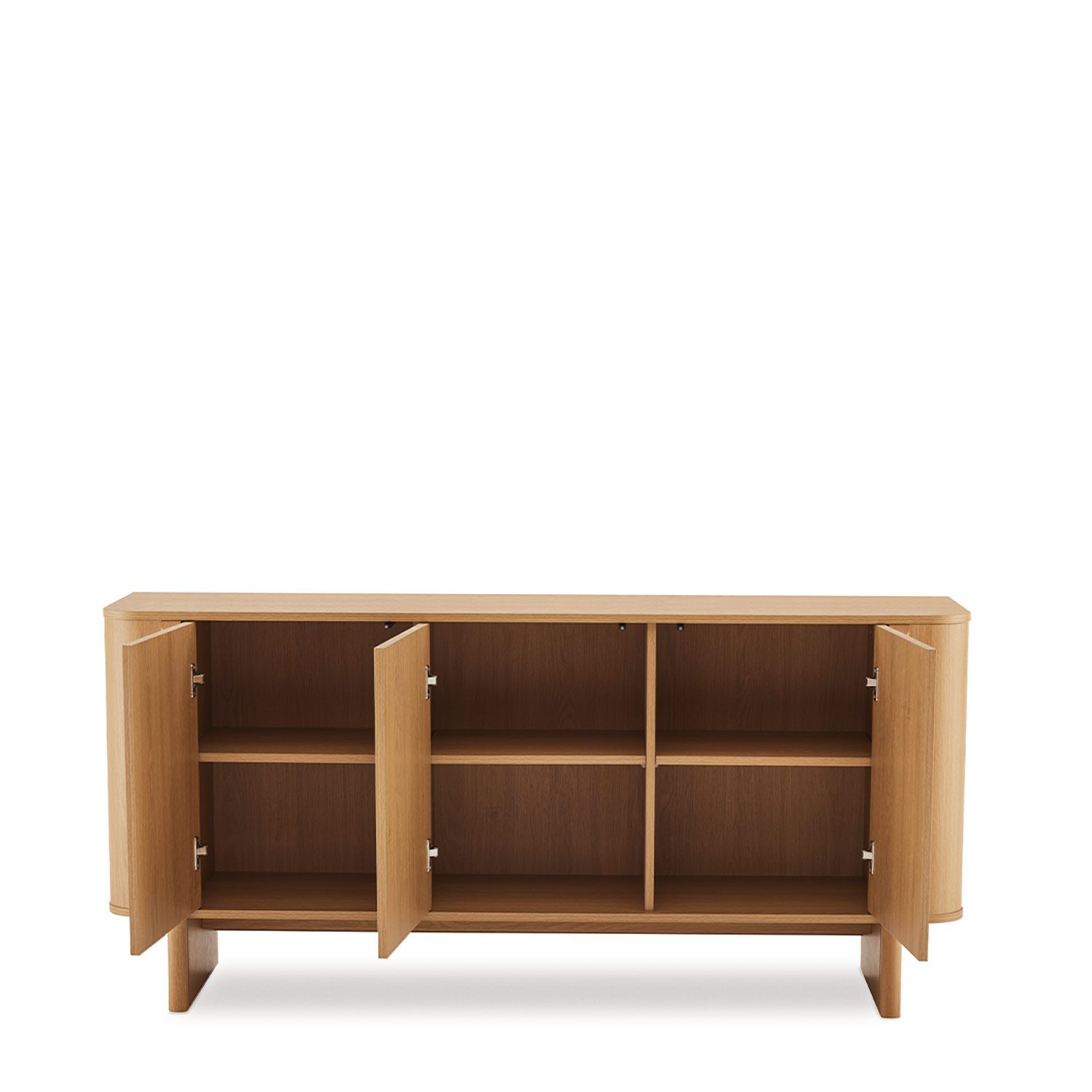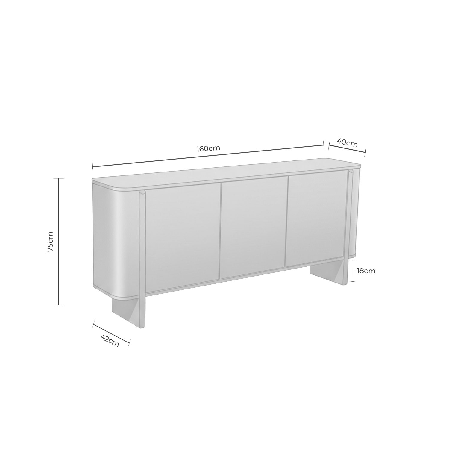 Con 160 cm de ancho, ofrece una amplia capacidad de almacenaje, siendo una solución funcional y estilosa para salones o comedores de estilo moderno, nórdico o contemporáneo.