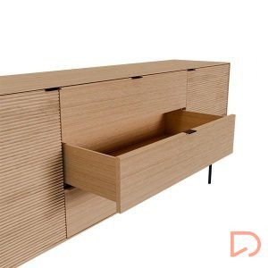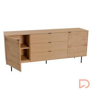 El aparador TULSA de 200 cm destaca por su diseño sobrio y su imponente presencia, ideal para espacios amplios que buscan almacenamiento con estilo. Con dos puertas y tres cajones, ofrece una distribución práctica que combina capacidad y orden sin renunciar a la estética.