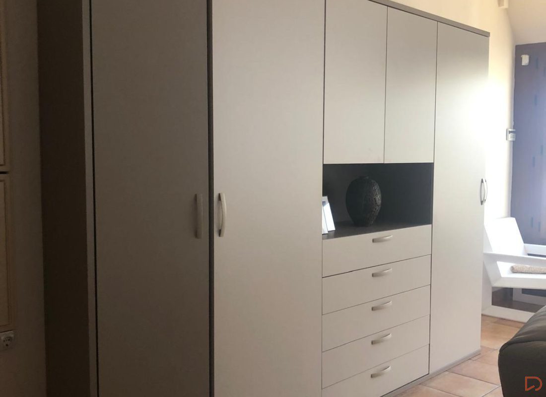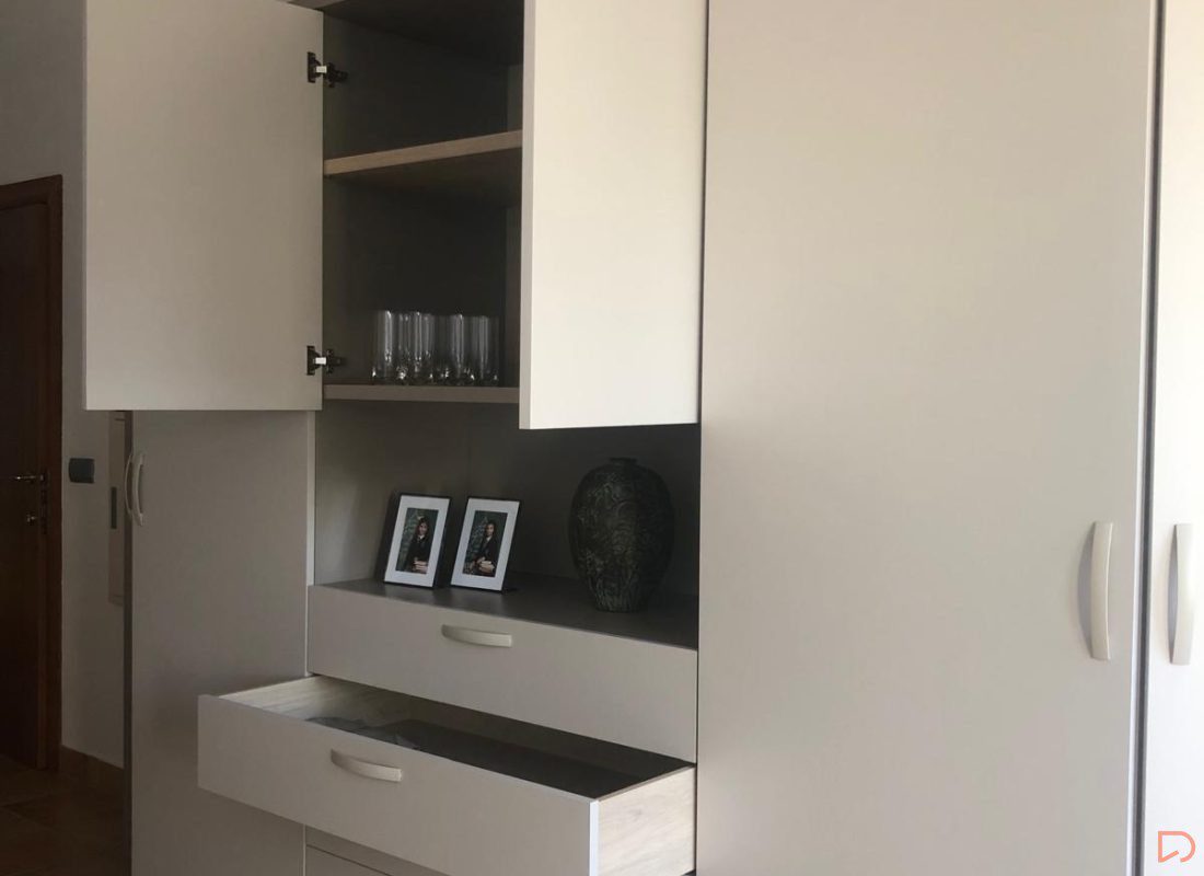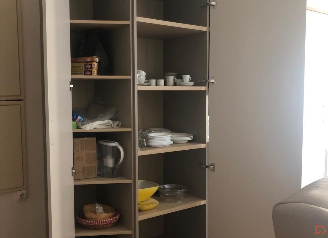 En este caso, necesitaban un armario multifuncional a medida con el objetivo principal de almacenar y distribuir sus objetos, su vajilla y algunas prendas.