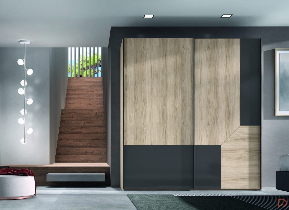 - El armario 67 cuenta con un diseño moderno, excelente para cualquier dormitorio de matrimonio o juvenil. Se trata de un diseño de dos puertas correderas fabricado con tablero melamínicos de primera calidad, resistentes a rayaduras, agrietamientos y manchas.