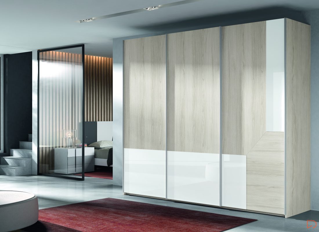 - El armario 70 cuenta con un diseño sencillo, elegante y discreto. Se trata de un armario de 3 puertas correderas colgadas combinado con cristal lacado en blanco. Los detalles de cristal hacen de este diseño un producto característico en cualqueir dormitorio de matrimonio o incluso juvenil.