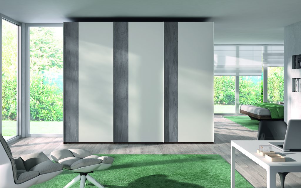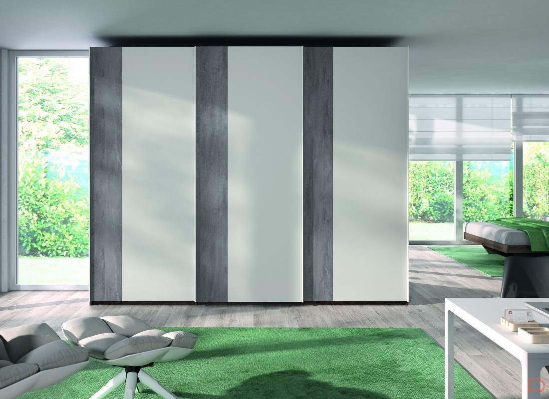 - El armario 75 cuenta con un diseño sencillo y elegante, perfecto para combinar en cualqueir habitación de matrimonio o incluso juvenil. Se trata de un armario de 3 puertas correderas colgadas, terminadas en colores base y combinación. Se caracteriza por su franja vertical que le da seriedad al modelo. En referencia a la configuración interior, tiene un diseño estándar, pero puede personalizarse a gusto de cada cliente.