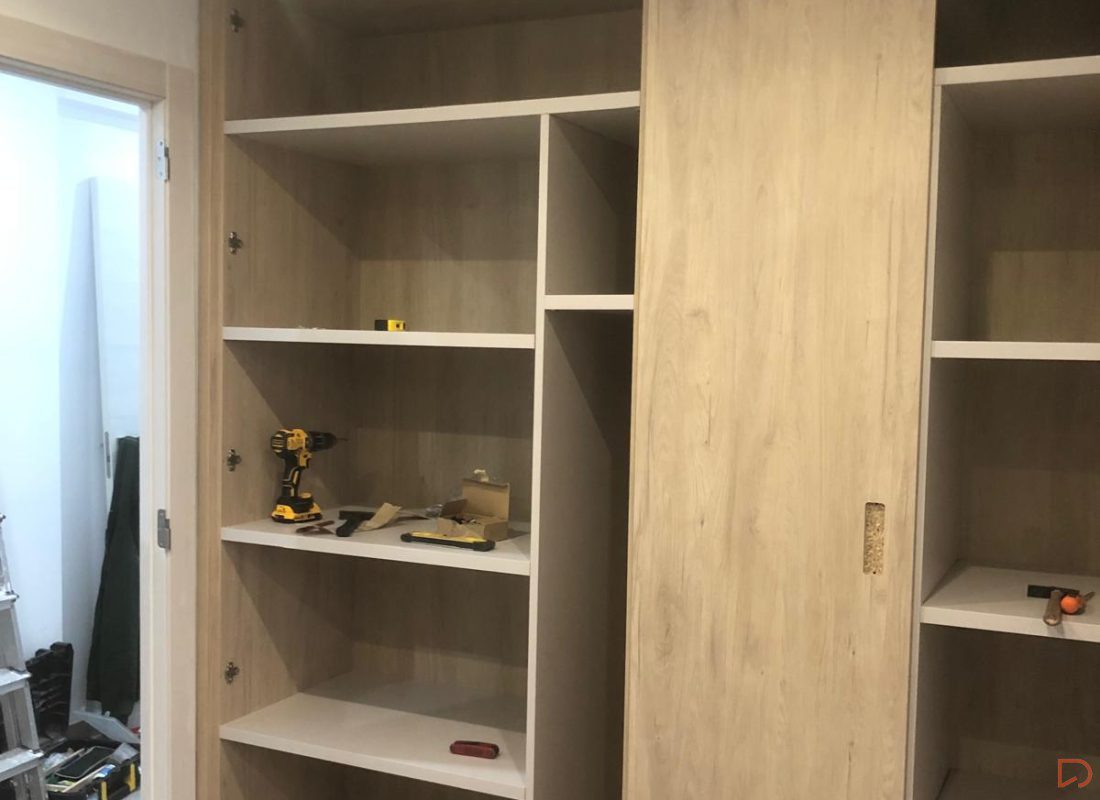 Para este proyecto diseñamos un armario a medida del espacio que disponía nuestro cliente, se compone de estantes para la ropa plegada, ya que era su principal necesidad.
