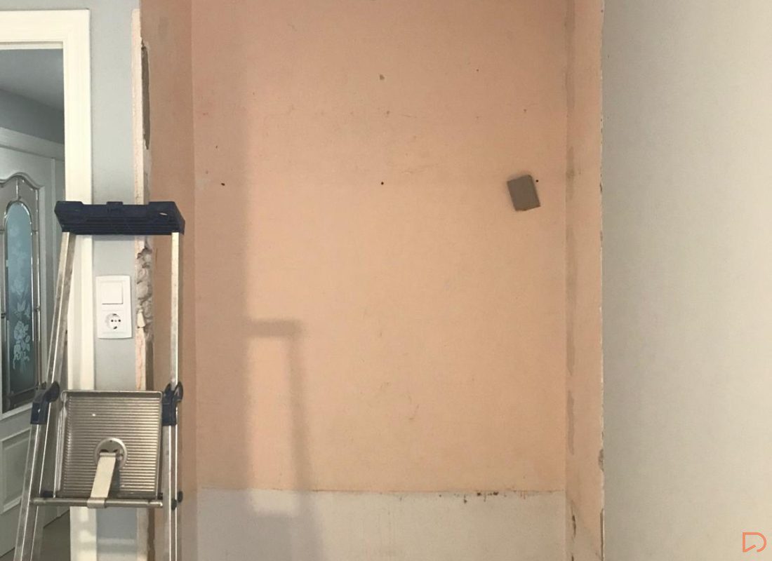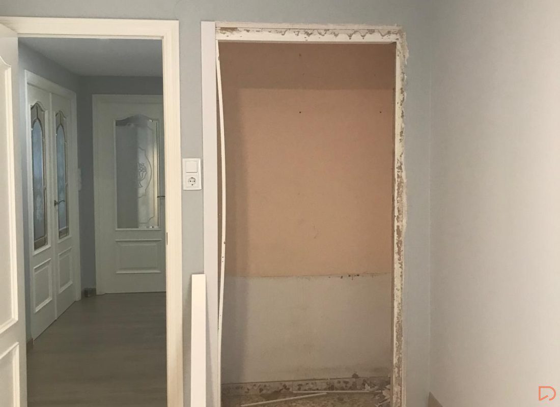 Realizamos obra para derribar la pared y hacer el hueco, gracias a nuestro sistema a medida le hicimos este armario de puertas batientes, distribuido a su gusto y aprovechando cada espacio, con barras para colgar ropa, estantes y al lado una cajonera que queda oculta.