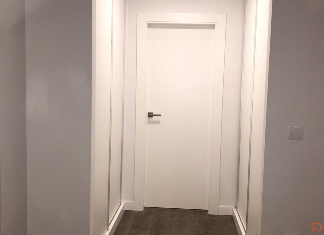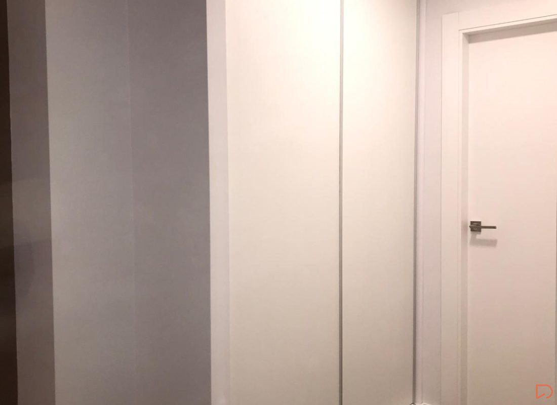 Armario empotrado de diseño contemporáneo con sistema de puertas correderas en acabado blanco mate, que se integra con elegancia en un entorno de líneas limpias y modernas. Su diseño maximiza el aprovechamiento del espacio en zonas de paso o dormitorios.