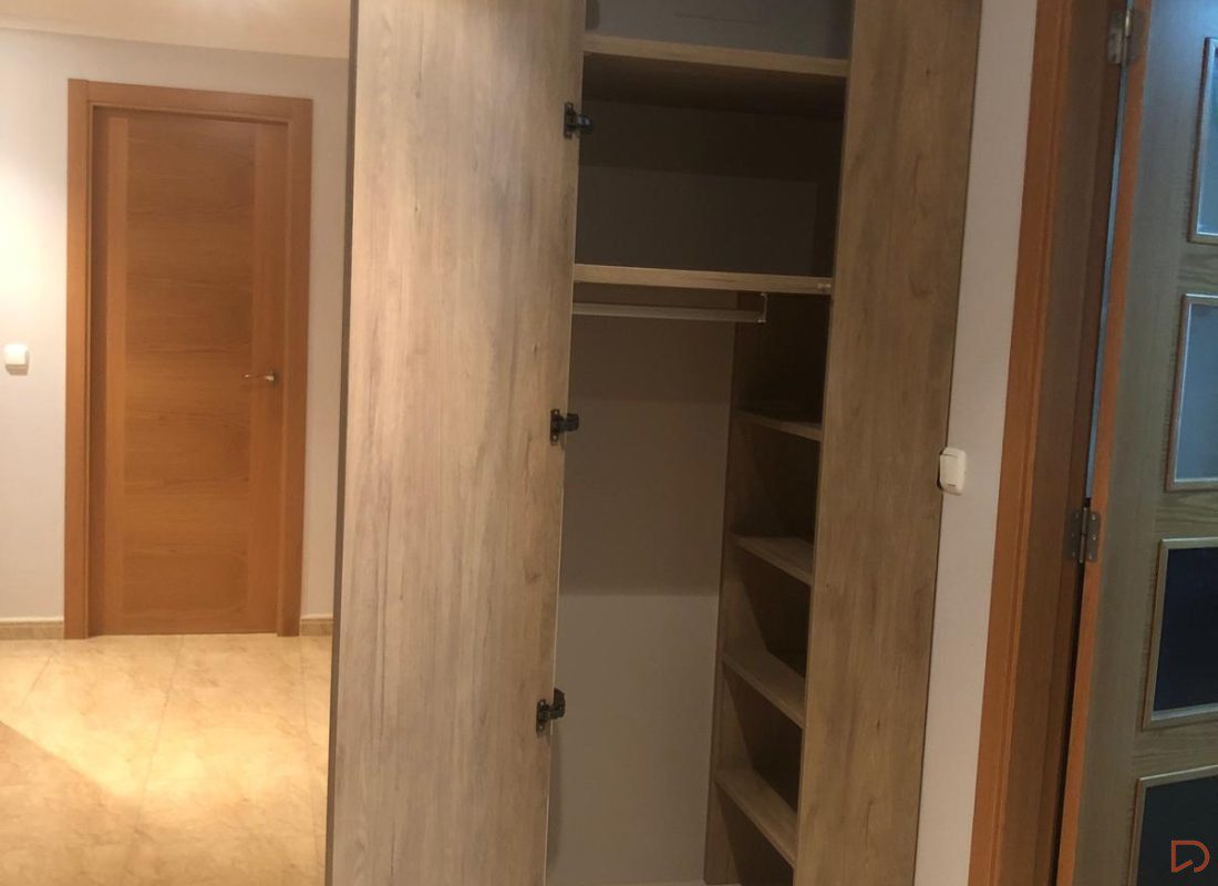 Requerían un armario para la entrada de su piso, a medida y con una distribución establecida. Con nuestro programa, les ofrecemos la posibilidad de diseñar un armario con puertas batientes, reduciendo así el ruido y la carga visual y ganando en cuanto a estética.