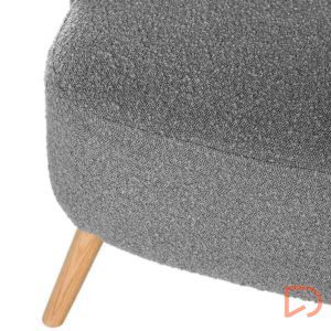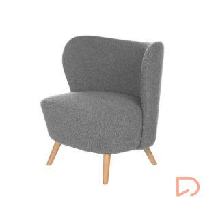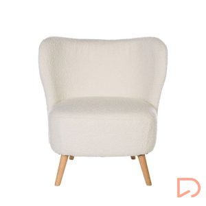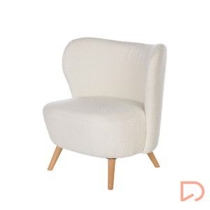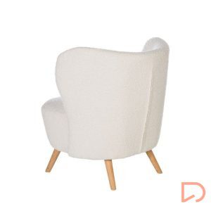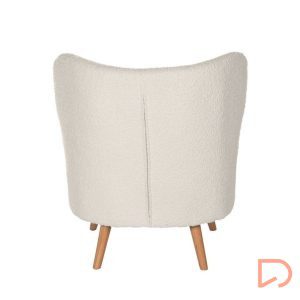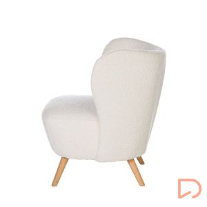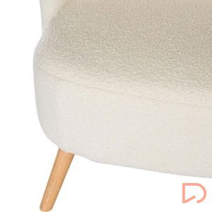 - La butaca JAIPUR combina ligereza visual y una comodidad envolvente. Su tapizado en tejido borreguito aporta calidez y textura, contrastando de forma armoniosa con la naturalidad de las patas de madera en acabado claro.
