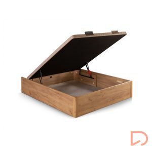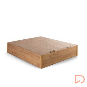 Canapé de madera especialmente elegante, gracias a su tapa abatible embutida, consiguiendo así mayor elegancia y disminuir la altura del canapé unos 4 cm., con tapa PREMIUM. Un canapé de madera elegante y muy resistente.