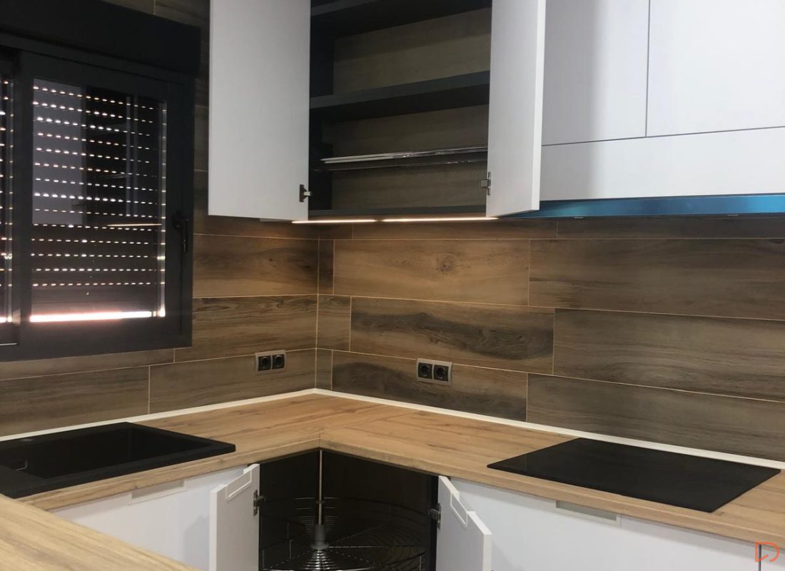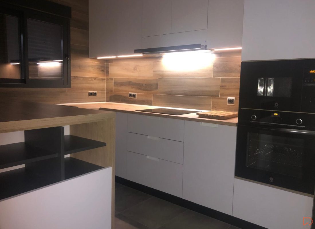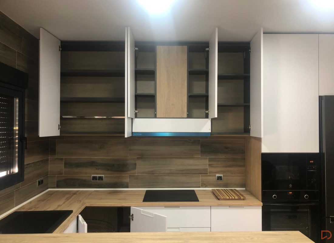 Esta reforma simple permite dar un estilo totalmente renovado a esta cocina, además de proporcionarle una disposición más moderna y un incremento en el espacio de almacenaje.