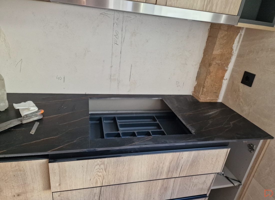 Trabajamos en colaboración con nuestros clientes, logrando una reforma completa que abarca el derribo, nuevas instalaciones de agua y electricidad, techos de pladur, alicatado, pintura, mobiliario, instalación de electrodomésticos, colocación de encimeras y frontis porcelánicos e iluminación.