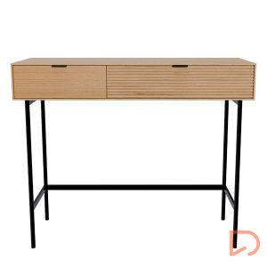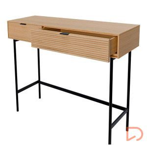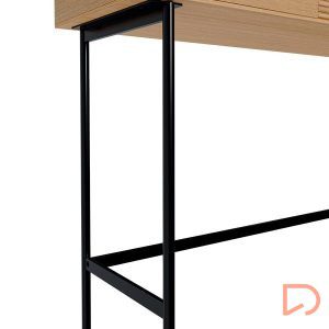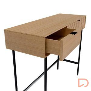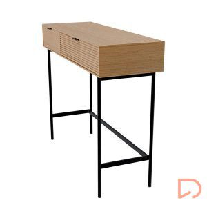La consola TULSA combina funcionalidad y elegancia con un diseño cuidado al detalle. Su estructura está elaborada en chapa de roble natural, mientras que los frentes de los cajones lucen madera maciza de roble rayado, aportando textura y un aire sofisticado.