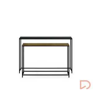 La consola TULSA combina funcionalidad y elegancia con un diseño cuidado al detalle. Su estructura está elaborada en chapa de roble natural, mientras que los frentes de los cajones lucen madera maciza de roble rayado, aportando textura y un aire sofisticado.
