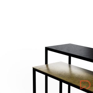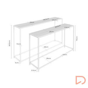Cuenta con dos cajones de apertura suave gracias al sistema soft closing y guías metálicas ocultas, que refuerzan su calidad y durabilidad. Los tiradores metálicos negros, al igual que sus patas en el mismo acabado, aportan un contraste moderno y refinado.