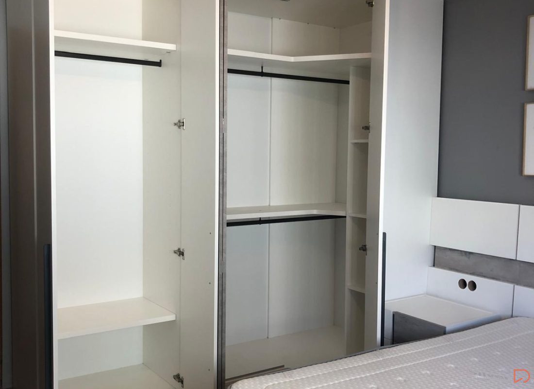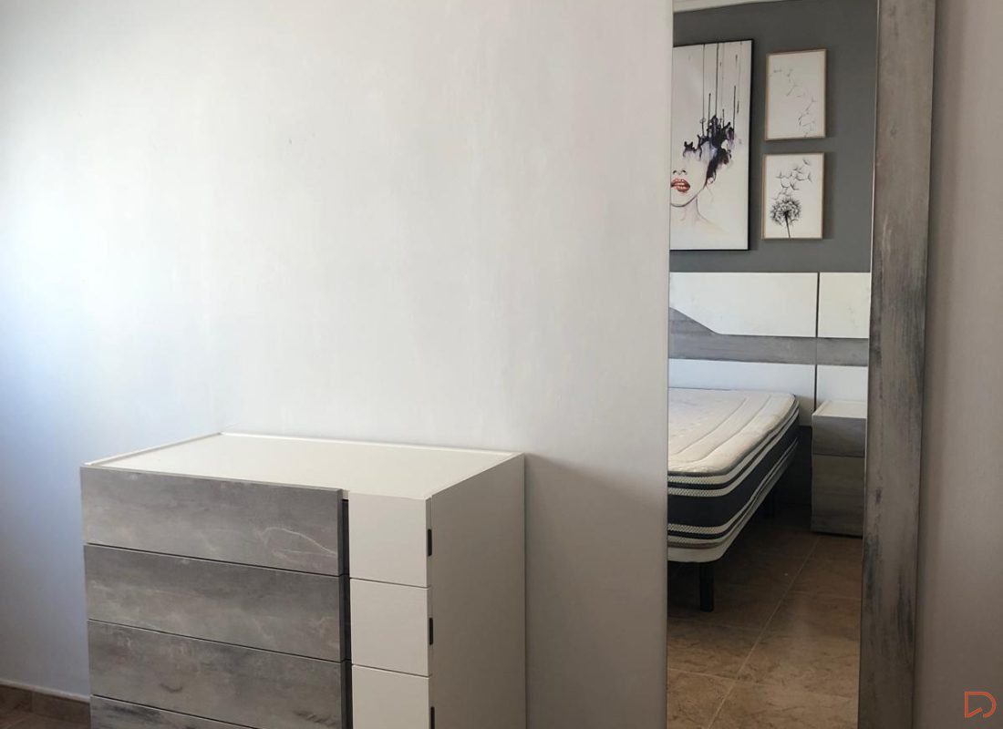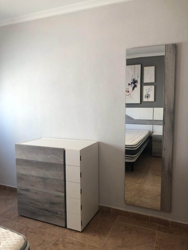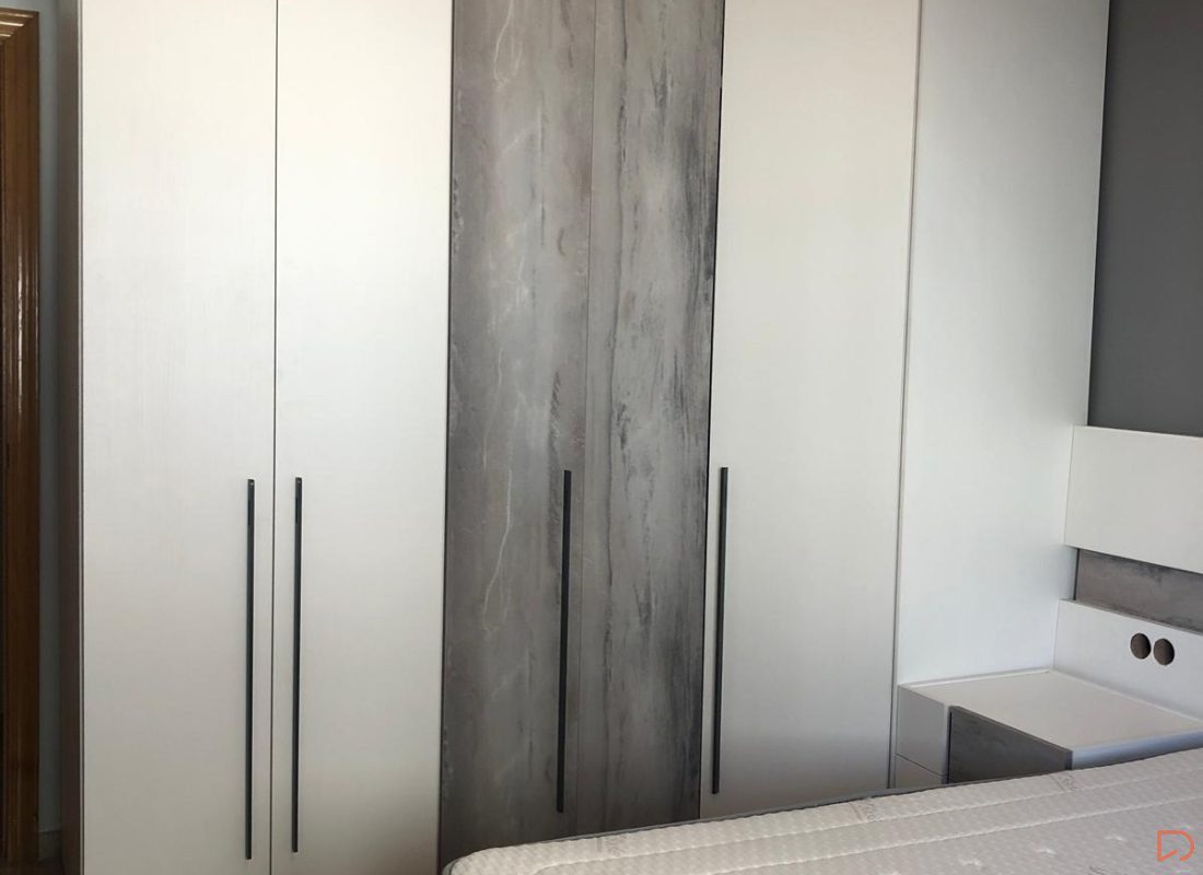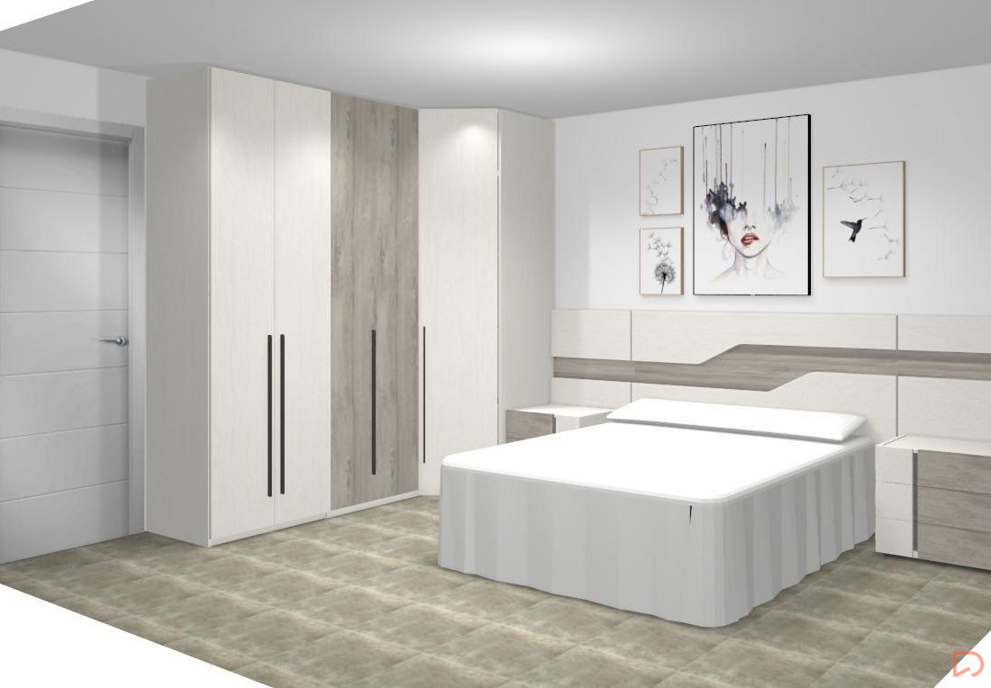 Así de estiloso, elegante y funcional le ha quedado este dormitorio a nuestros clientes, han utilizado los mismos acabados para el cabezal, la cómoda, el espejo y finalmente el armario rinconero.