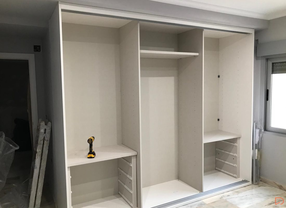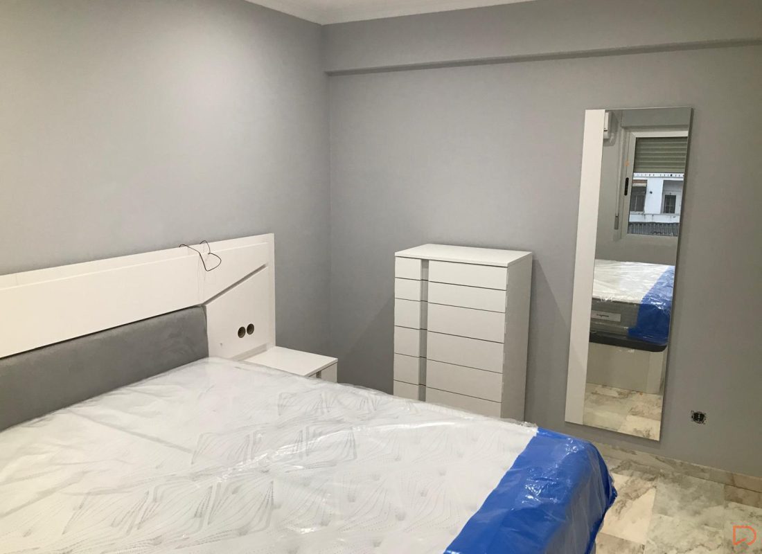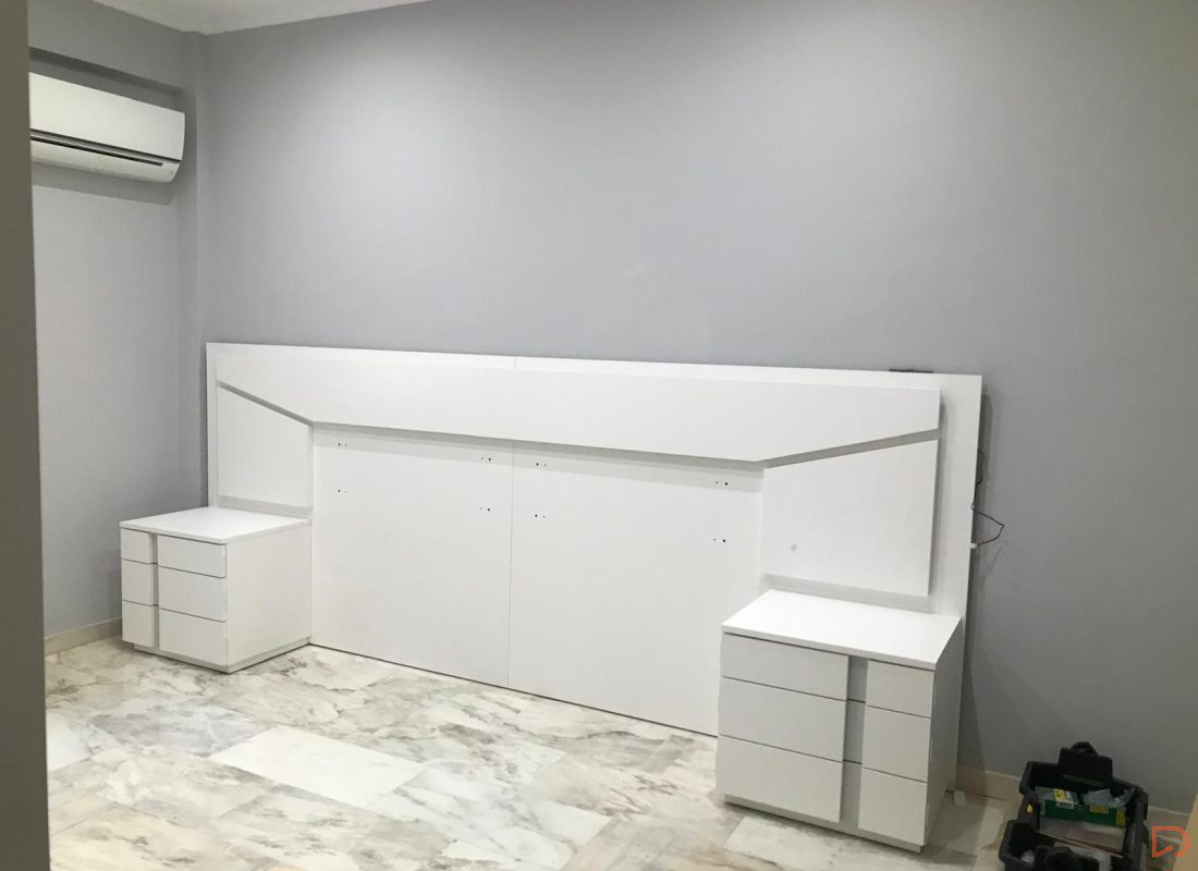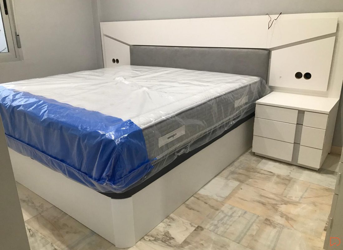 Así de estiloso, elegante y funcional le ha quedado este dormitorio a nuestros clientes, han utilizado los mismos acabados para el cabezal, el canapé, el sinfonier y finalmente el armario.