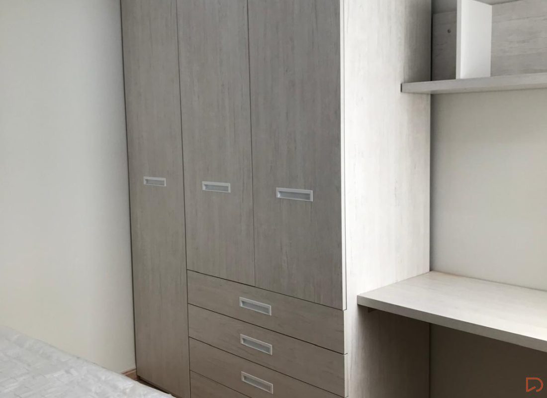 Así de estiloso, elegante y funcional le ha quedado este dormitorio a nuestros clientes, han utilizado los mismos acabados para la zona estudio y finalmente el armario.