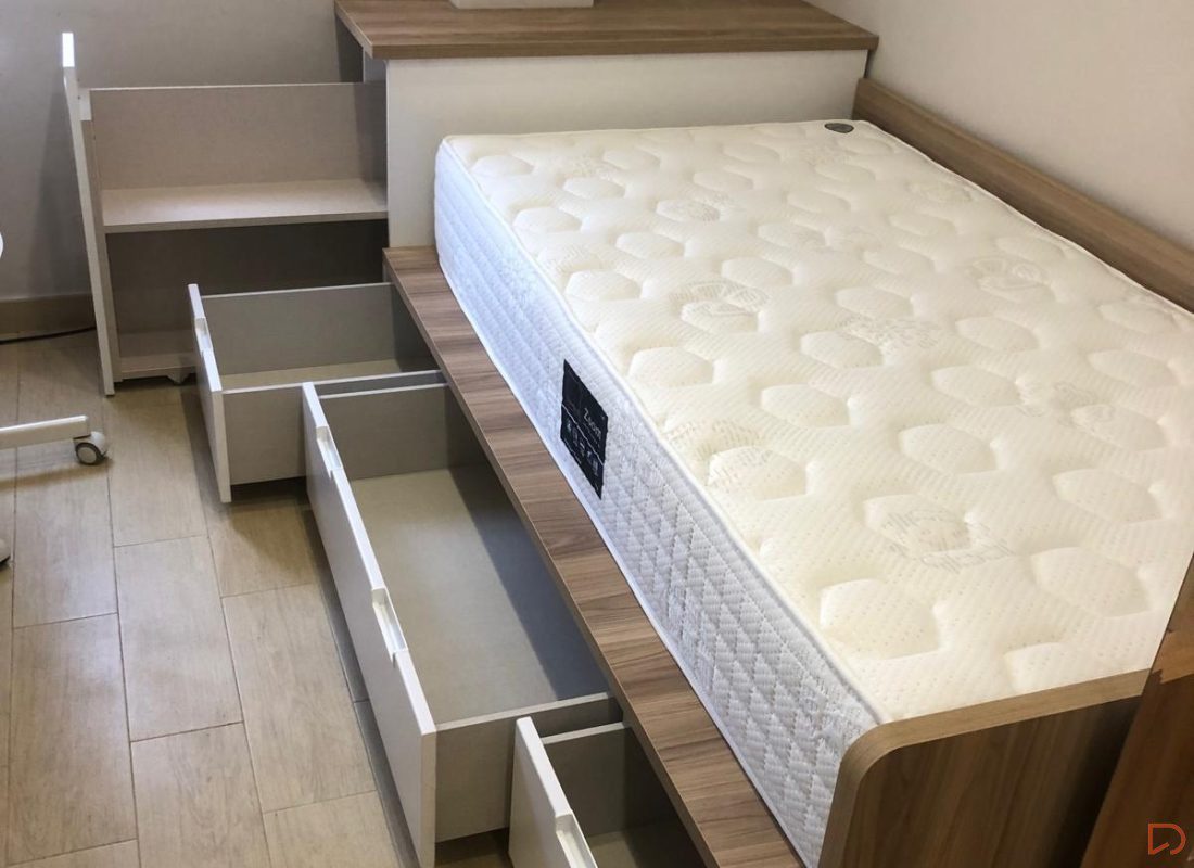 Así de estiloso, elegante y funcional le ha quedado esta cama nido a nuestros clientes, con múltiples cajones para almacenar.