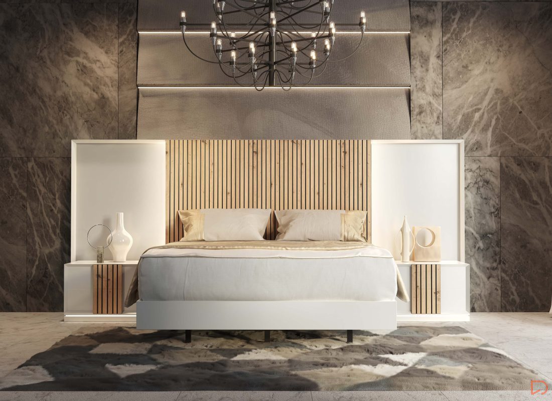 - Original dormitorio moderno blanco Natura 06 con elegantes detalles en color madera natural.