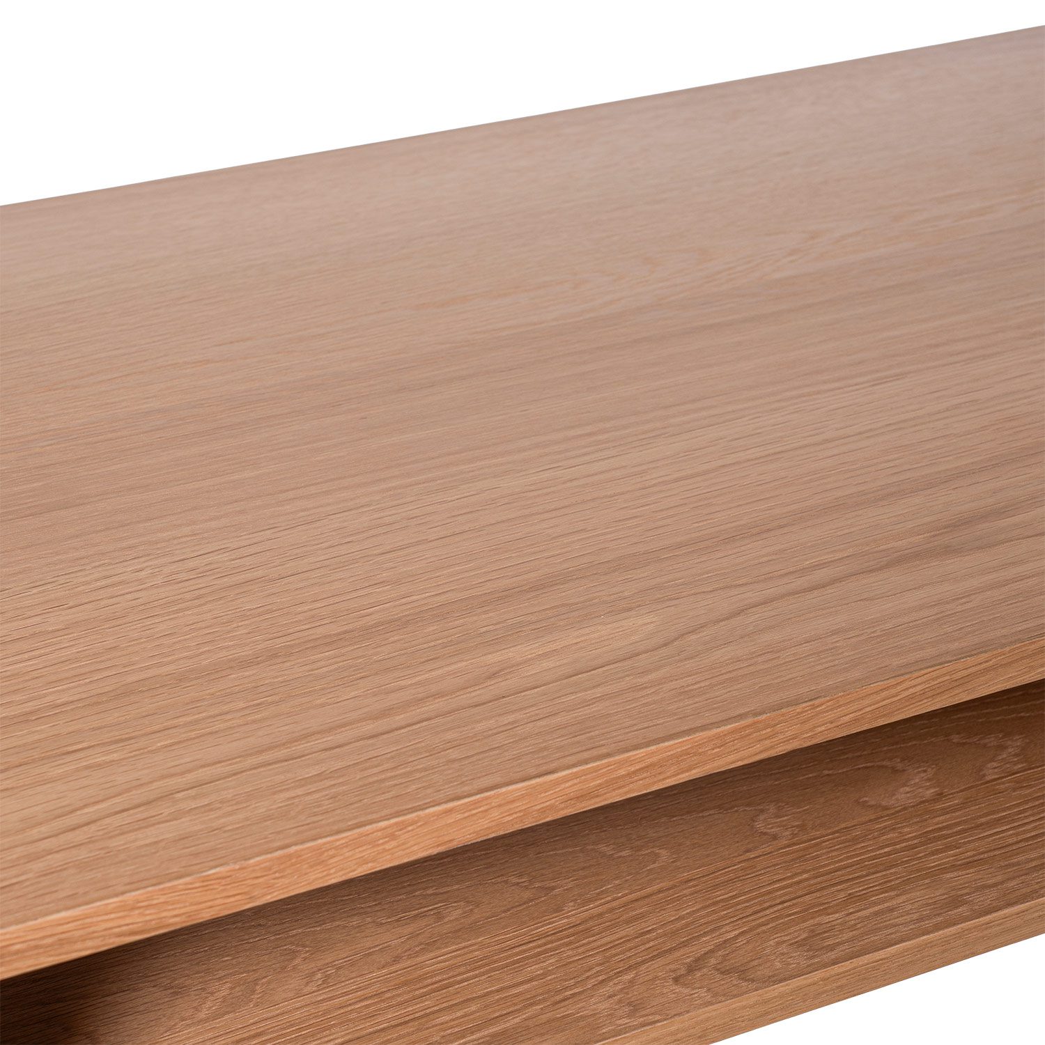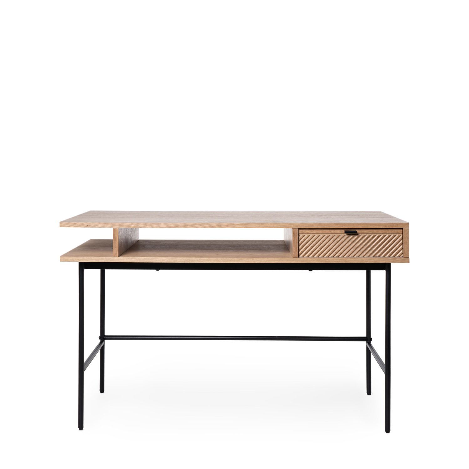 Confeccionado en roble y complementado con patas metálicas en un elegante acabado negro, esta pieza combina una estética sobria con un carácter atemporal. Su diseño limpio y equilibrado permite que se integre con facilidad en una amplia variedad de estilos decorativos, que van desde lo industrial hasta el minimalista, aportando un toque de sofisticación discreta.