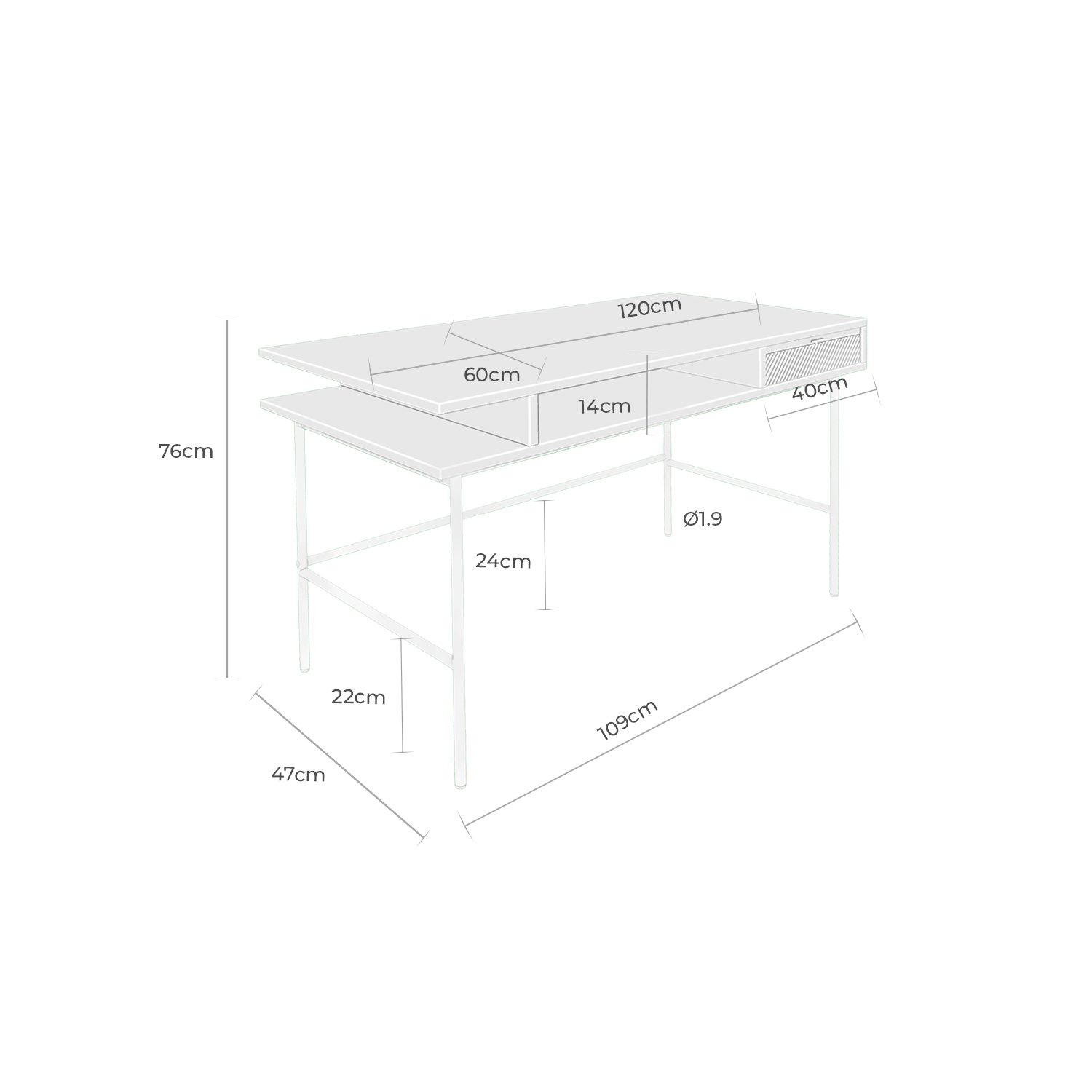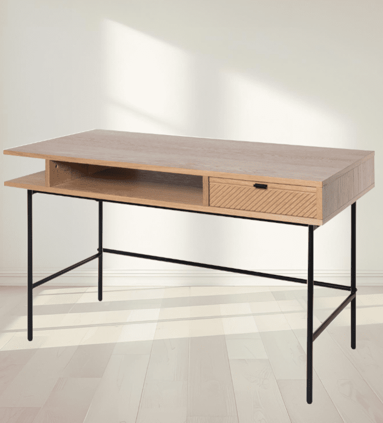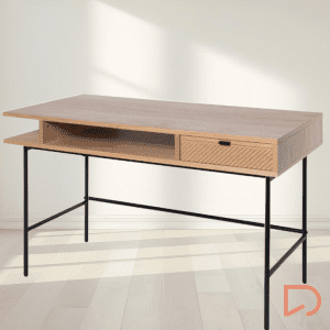 El escritorio ALABAMA ofrece una amplia superficie de trabajo, ideal tanto para tareas profesionales como creativas, asegurando comodidad y eficiencia. Además, incluye un práctico cajón integrado con hueco que optimiza el espacio, proporcionando almacenamiento adicional para mantener todos los útiles y documentos organizados y al alcance de la mano.