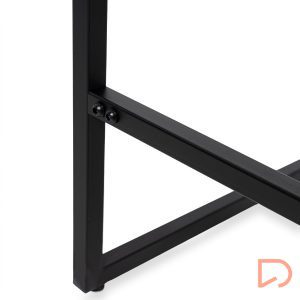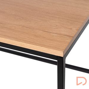 Con un diseño minimalista, combina la estructura metálica en color negro con chapa sintética color roble, creando un contraste cálido y moderno que se adapta a cualquier estilo decorativo.
