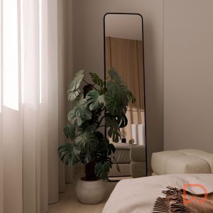 El espejo RODAS combina a la perfección modernidad y funcionalidad, destacándose como una pieza clave en la decoración de interiores. Su marco de aluminio, ligero pero resistente, presenta un sofisticado acabado en negro mate que añade un toque de elegancia discreta y atemporal a cualquier espacio.