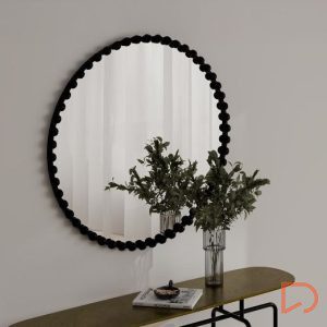El acabado en negro mate del marco, sumado a la sutil ornamentación, logra un equilibrio perfecto entre sofisticación y minimalismo, haciendo que este espejo se adapte armoniosamente a estilos decorativos como el industrial, el contemporáneo o el nórdico. Su diseño no solo llama la atención por su estética, sino que también aporta un contraste elegante y atemporal.