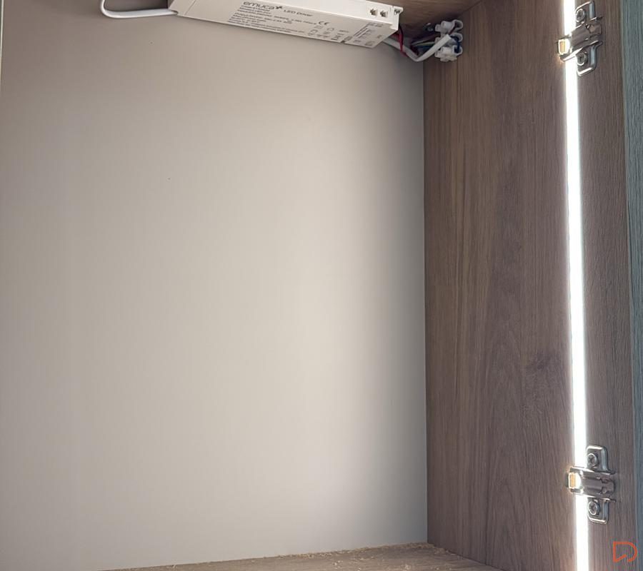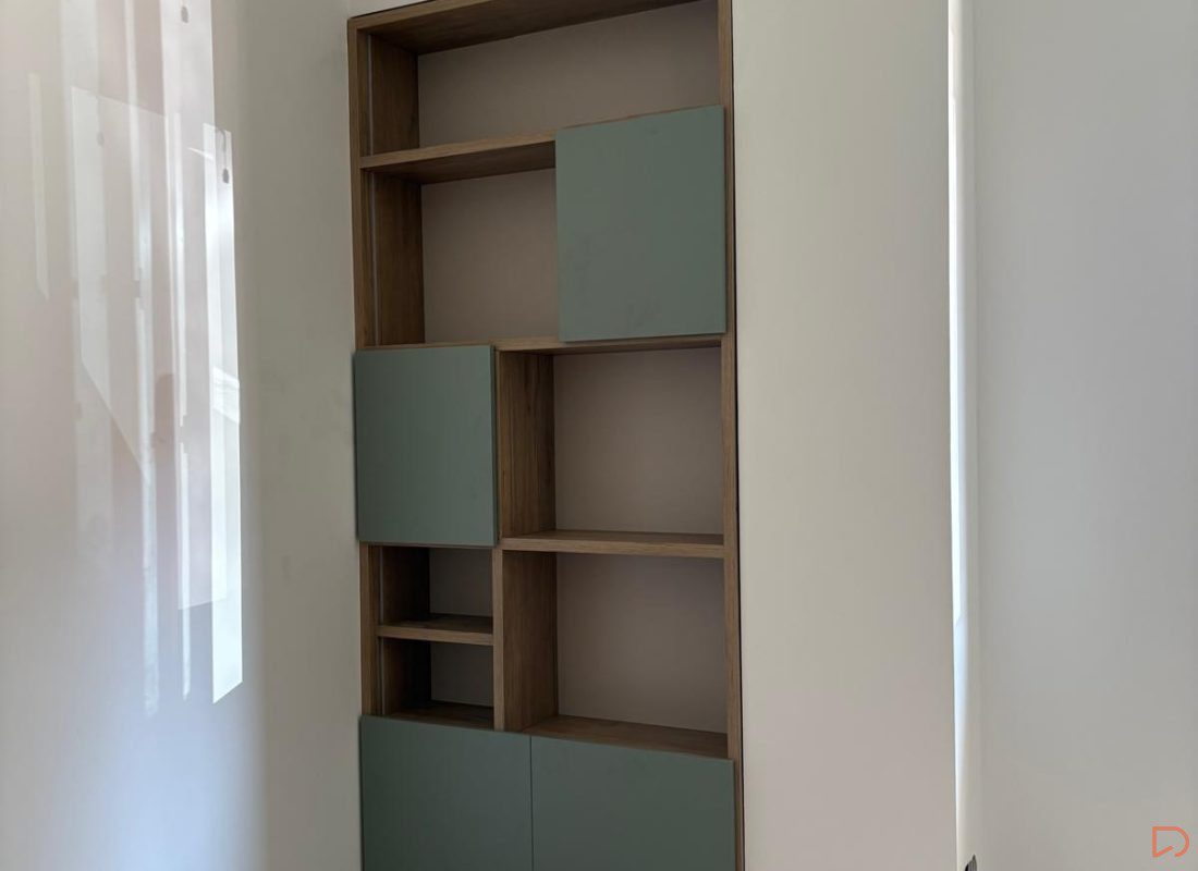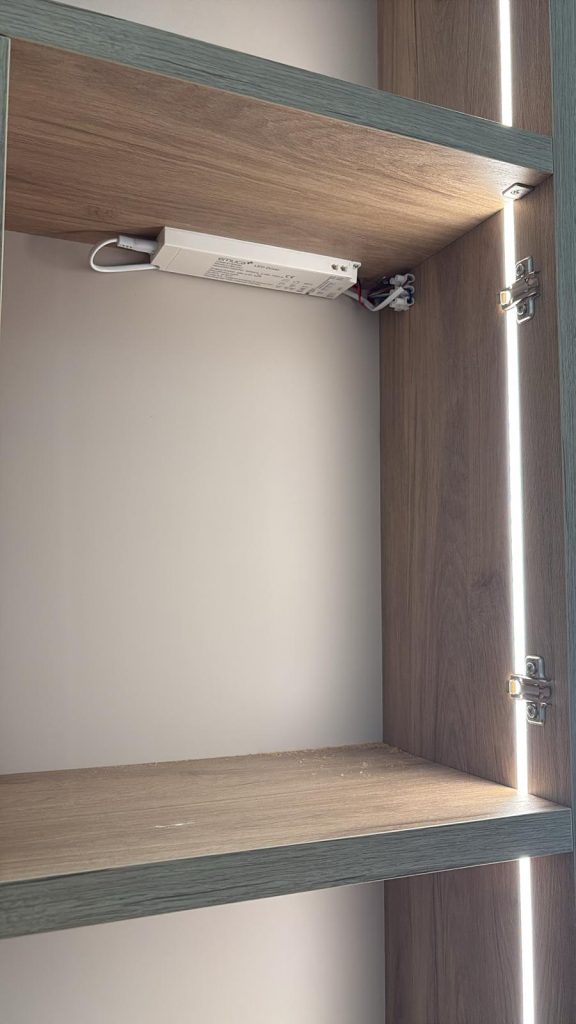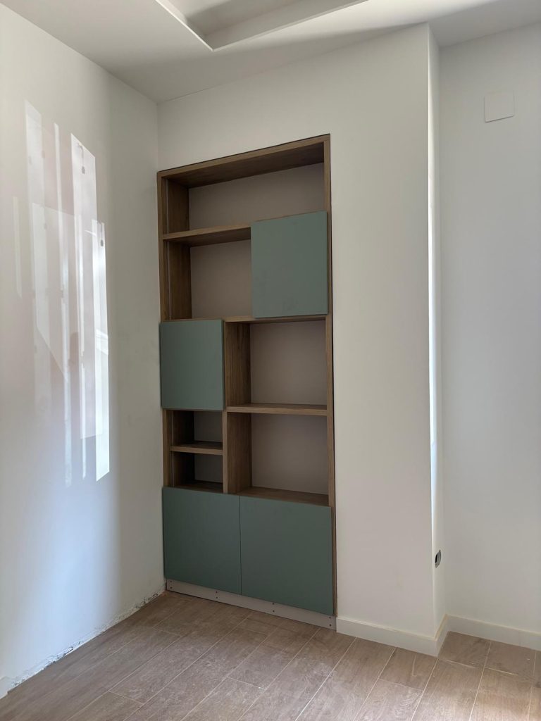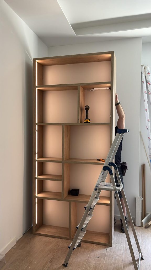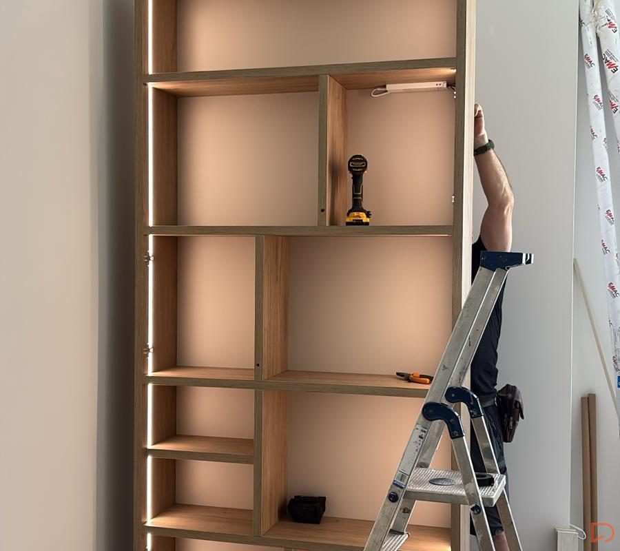 Estantería a medida para hueco, integrada con led y distribución elegida por el cliente.