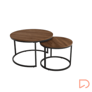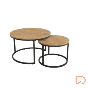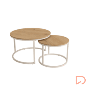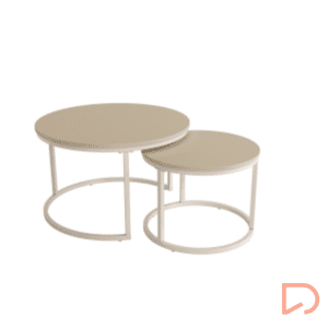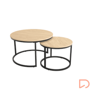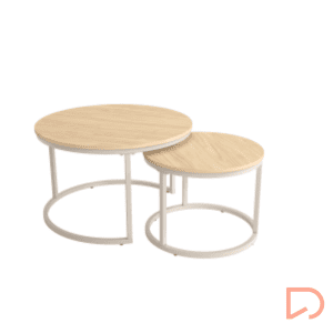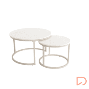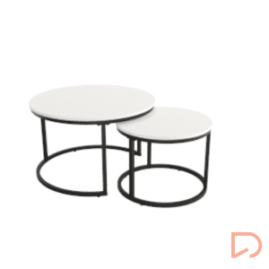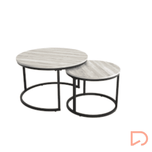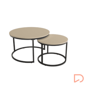 - Mesas auxiliares redonda con pata metálica y sobre laminado.