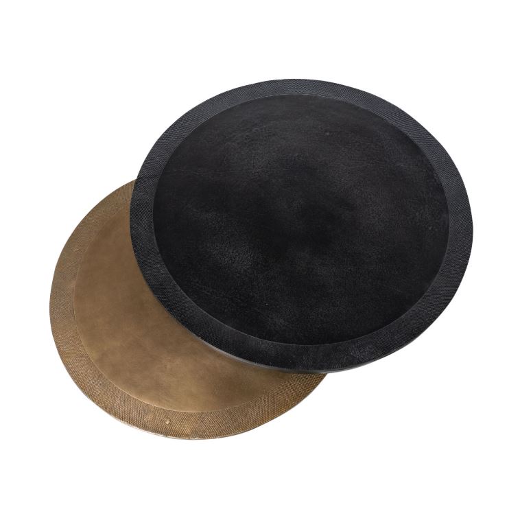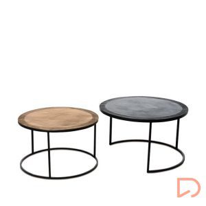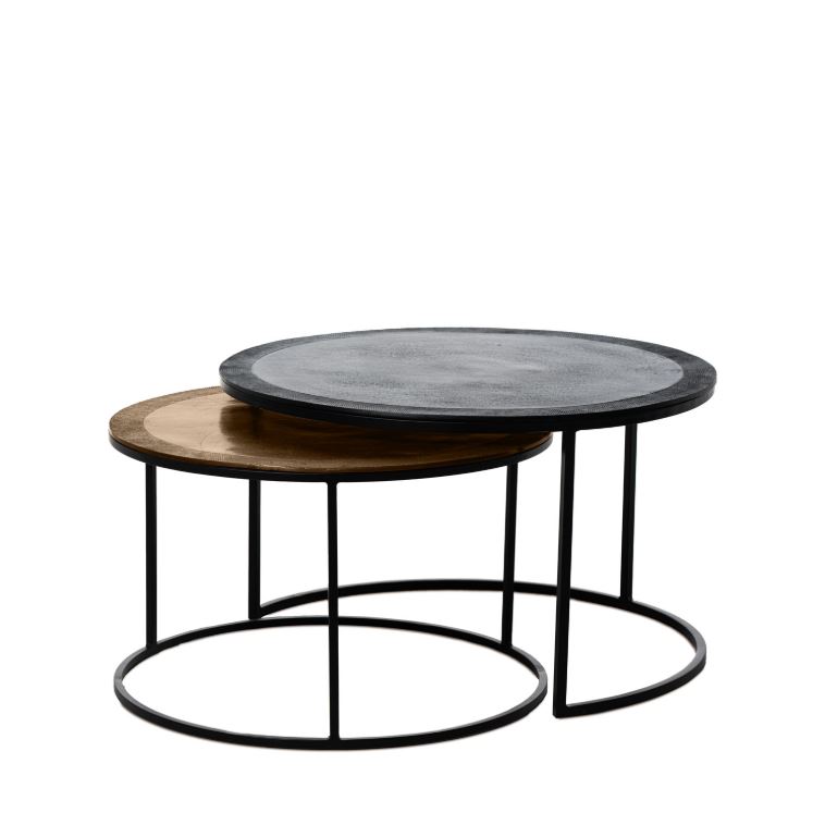 Además, la superficie de las mesas está adornada con un borde externo elaborado en el propio metal, un detalle que añade un toque distintivo y exótico al diseño.