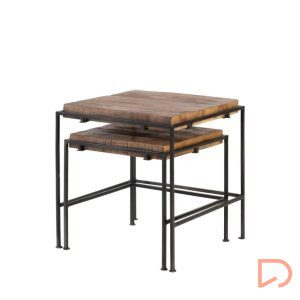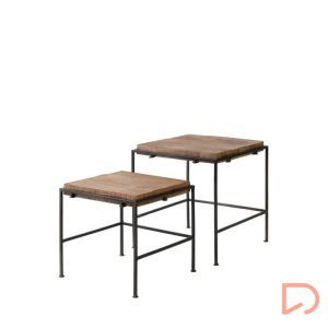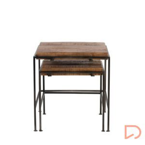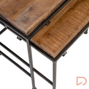 - Set de mesas de centro con tapa de madera de mango y patas en hierro lacado mate.