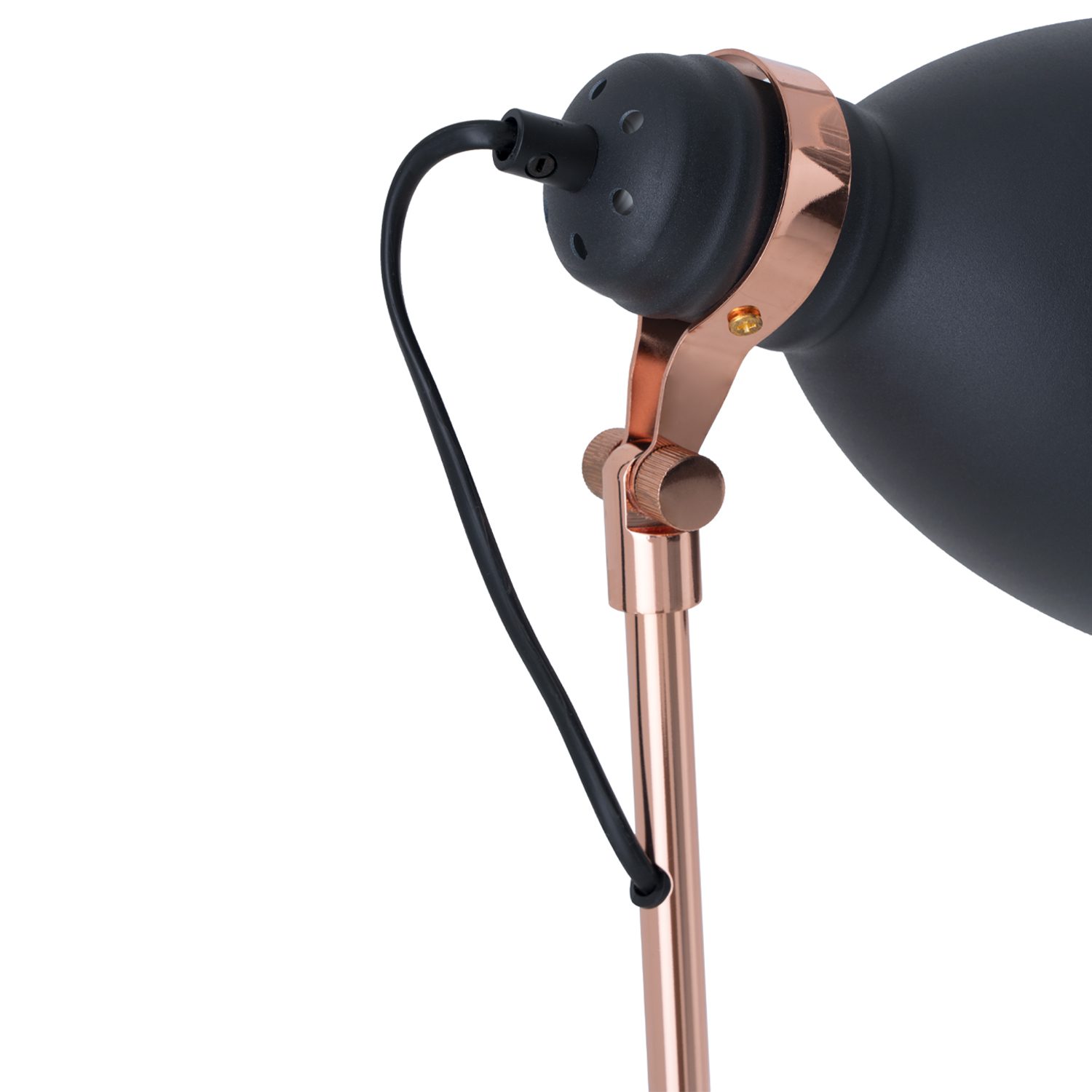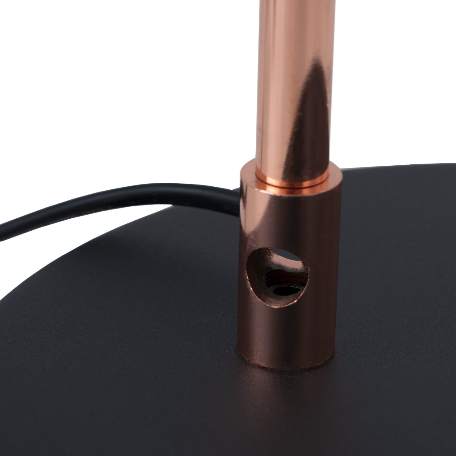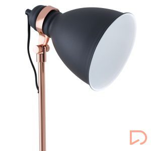 Los detalles en cobre metálico añaden un toque sofisticado que rompe con la sobriedad del negro, aportando calidez y estilo. Ideal para salones, estudios o rincones de lectura, BLASCA es una pieza versátil que aporta luz con carácter y diseño con personalidad.