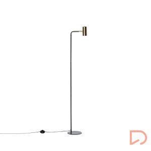 La lámpara de suelo RUGAT destaca por su elegancia discreta y su estilo contemporáneo. Su estructura en metal negro se combina con una pantalla dorada, que no solo añade un toque sofisticado, sino que proyecta una luz cálida y envolvente, ideal para crear ambientes acogedores.