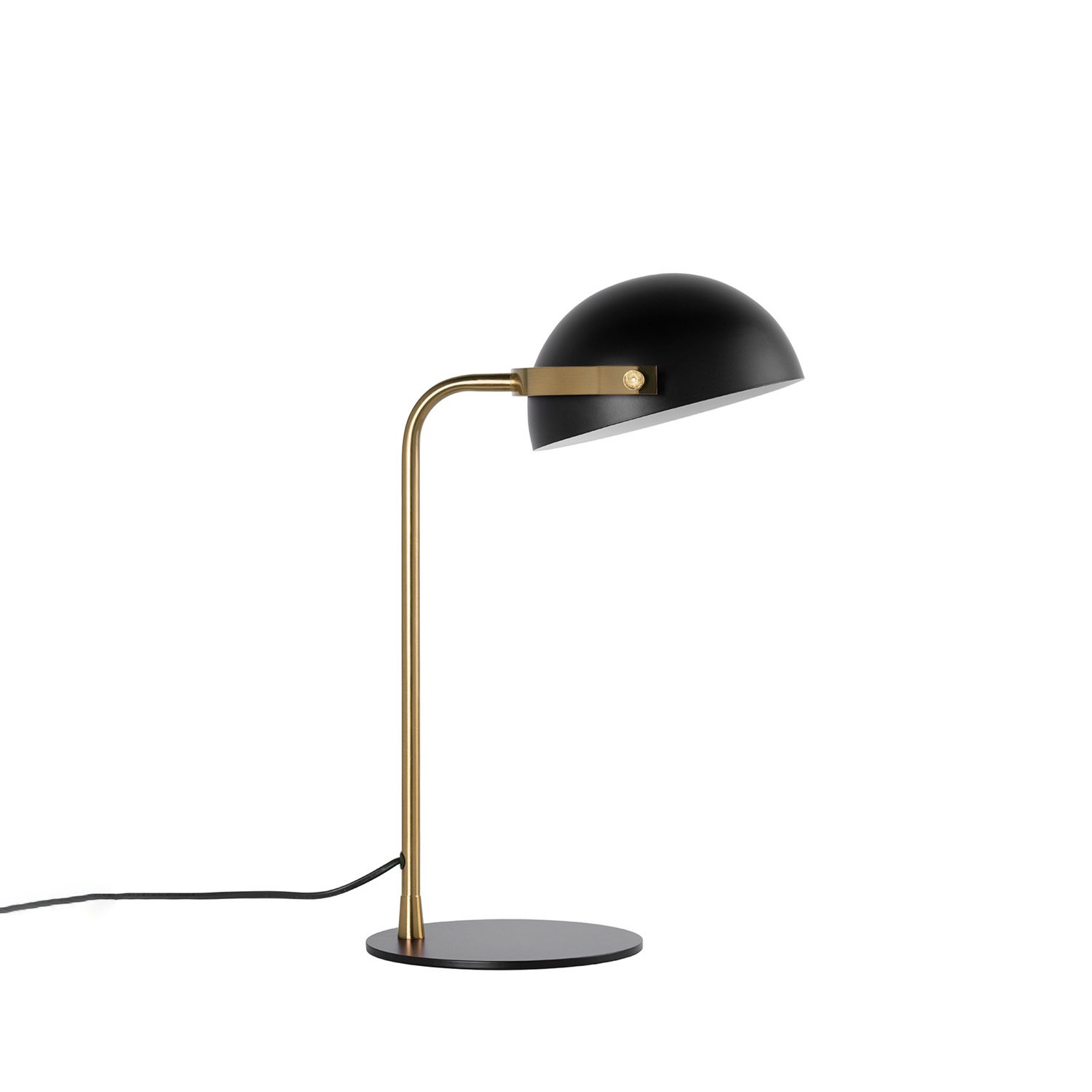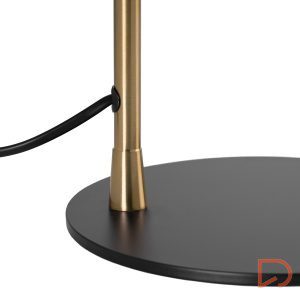 La lámpara de sobremesa ALCOVER destaca por su diseño moderno y sofisticado, ideal para añadir un toque de elegancia a cualquier rincón. Su estructura en metal negro aporta sobriedad y estilo, mientras que los detalles dorados introducen un contraste cálido y refinado que realza su silueta.