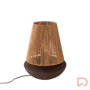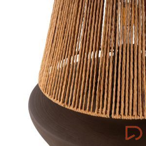 Su base de cerámica en tono café no solo proporciona una estructura robusta y estable, sino que también añade un toque de refinamiento a la decoración. La pantalla de cuerda de cáñamo, por su parte, permite una difusión de luz suave y envolvente, generando un ambiente acogedor y relajante.