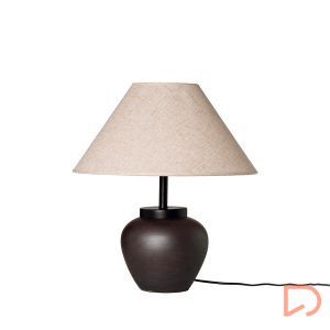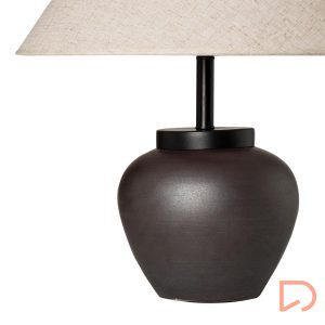 La lámpara de sobremesa YESA combina formas suaves y materiales cálidos en una pieza elegante y versátil. Su base de cerámica en color oscuro aporta estabilidad y un toque sofisticado, mientras que la pantalla de tela difumina la luz con delicadeza, creando una atmósfera acogedora.
