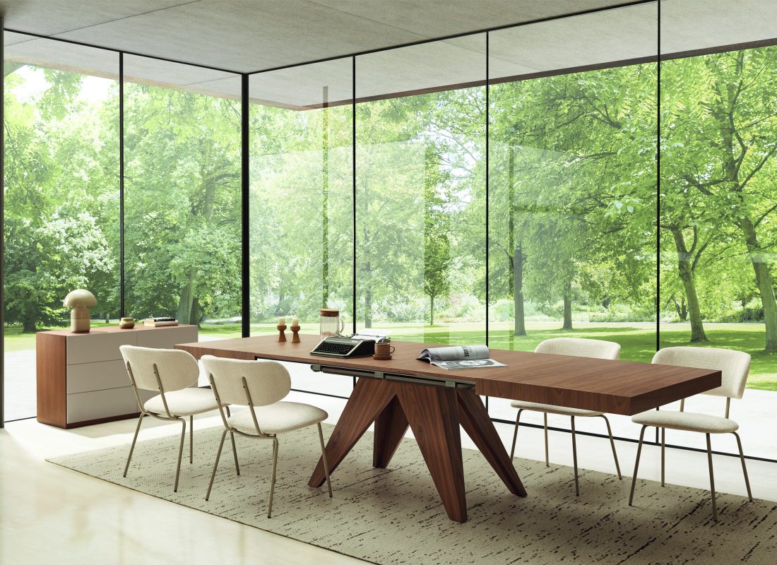 - La mesa Bou cuenta con tres niveles de apertura de 1, 2 y 3 extensibles.