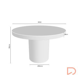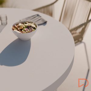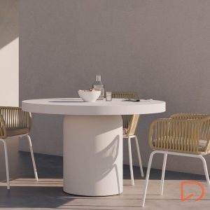 Disponible en dos medidas —ø90 y ø120 cm—, se adapta con facilidad tanto a espacios más recogidos como a zonas amplias, convirtiéndose en un punto focal sutil y sofisticado. Su color blanco mate refuerza su carácter minimalista, encajando a la perfección en ambientes contemporáneos, mediterráneos o nórdicos.