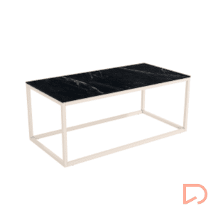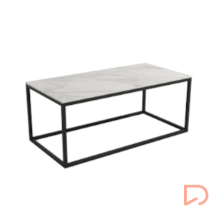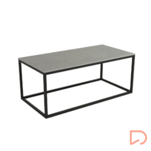 - Mesa auxiliar rectangular con pata metálica y sobre porcelánico en diseño piedras.