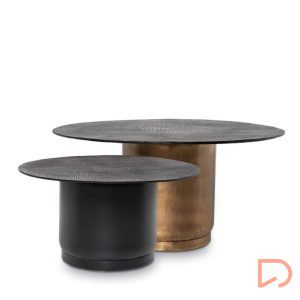 La mesa de centro DURAI 74 es una oda al diseño audaz y contemporáneo. Su tapa redonda de aluminio, con un acabado cepillado que aporta textura y sofisticación, refleja la luz de manera sutil, generando un juego visual elegante y moderno.