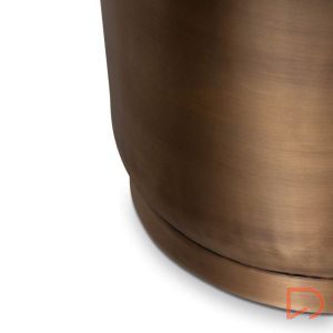 Sostenida por una base de hierro en acabado cobre, su estructura añade un matiz cálido y original que realza su presencia sin perder la esencia industrial. Este contraste entre la superficie metálica y la calidez del cobre le otorga un aire refinado, perfecto para quienes buscan un detalle distintivo en su decoración.