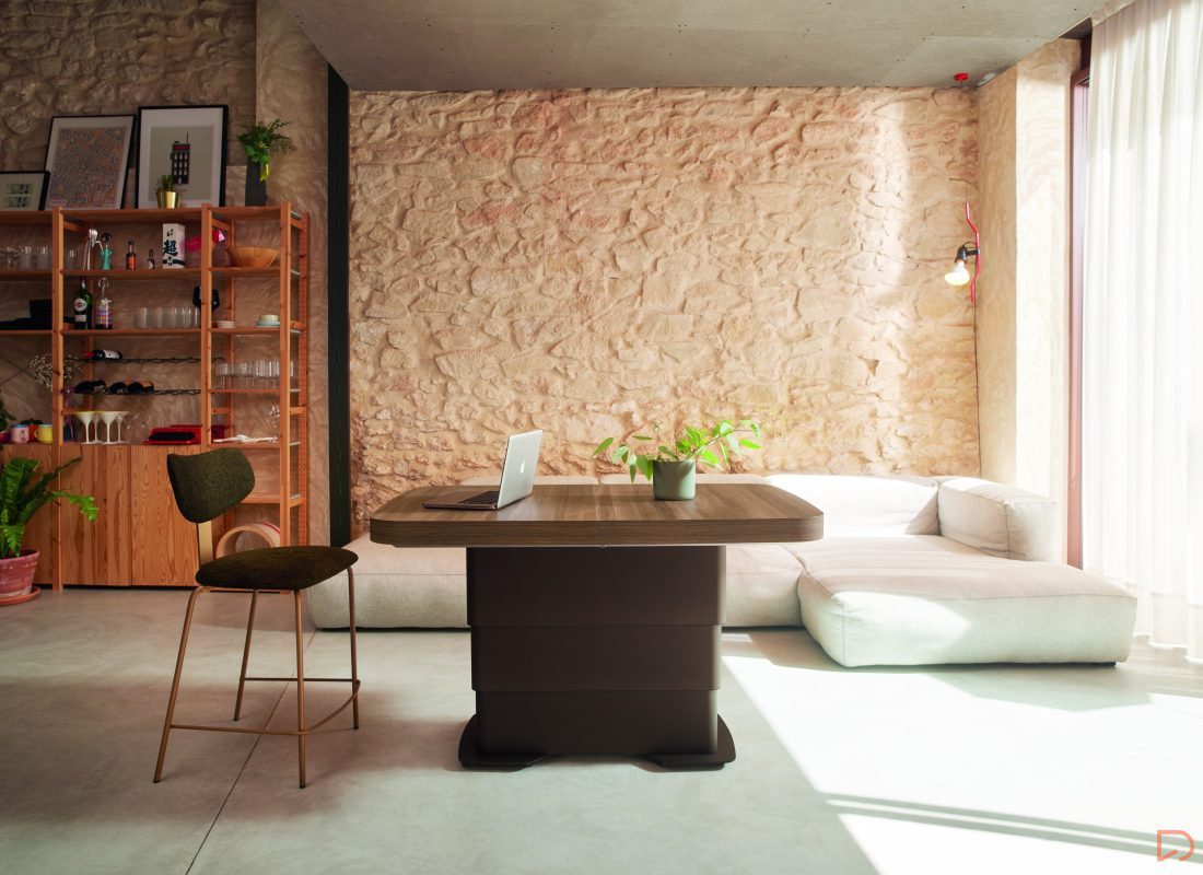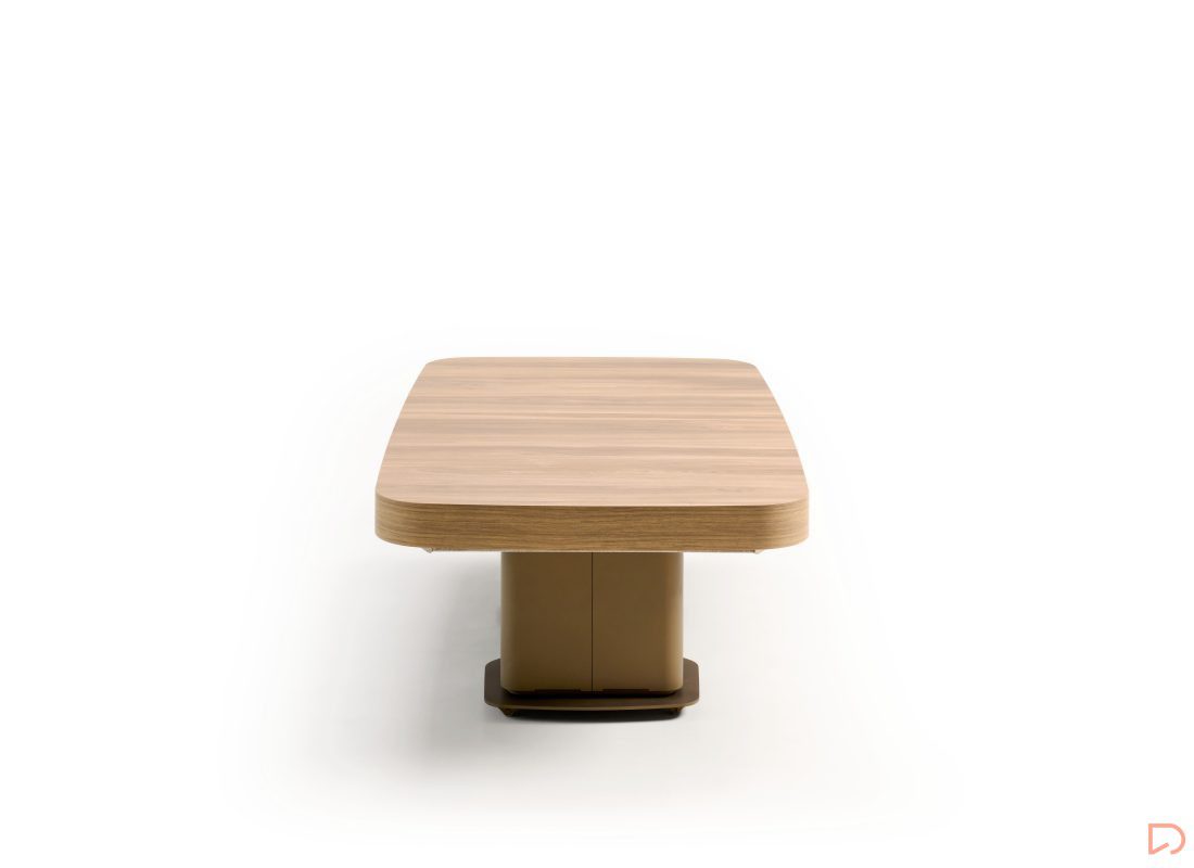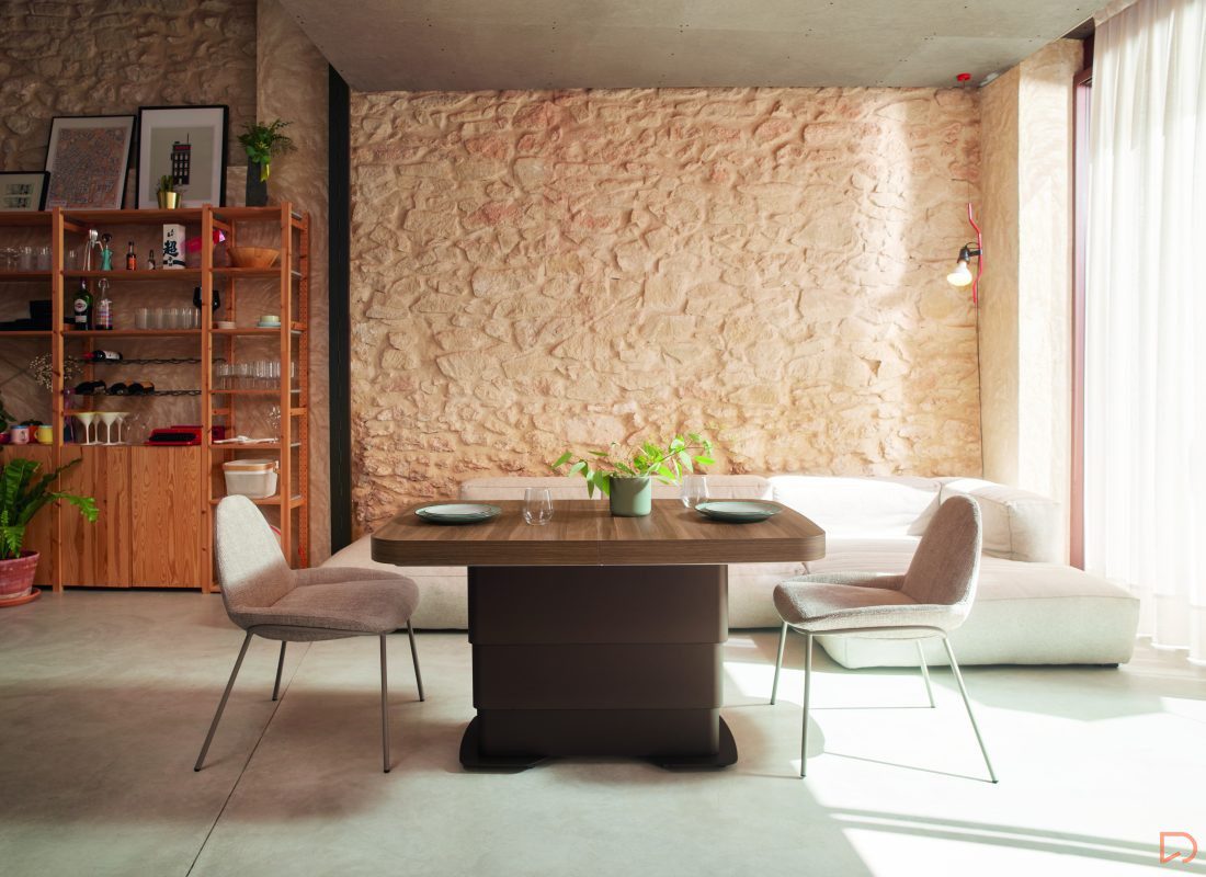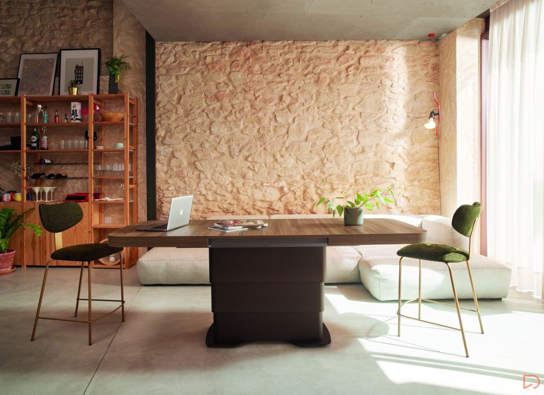 La mesa ELEGANT es una mesa multifuncional de centro convertible en mesa de comedor, con pie metálico y sobre extensible con canto redondo o recto y acabados en lacados, barnizado en chapa natural o laminados.