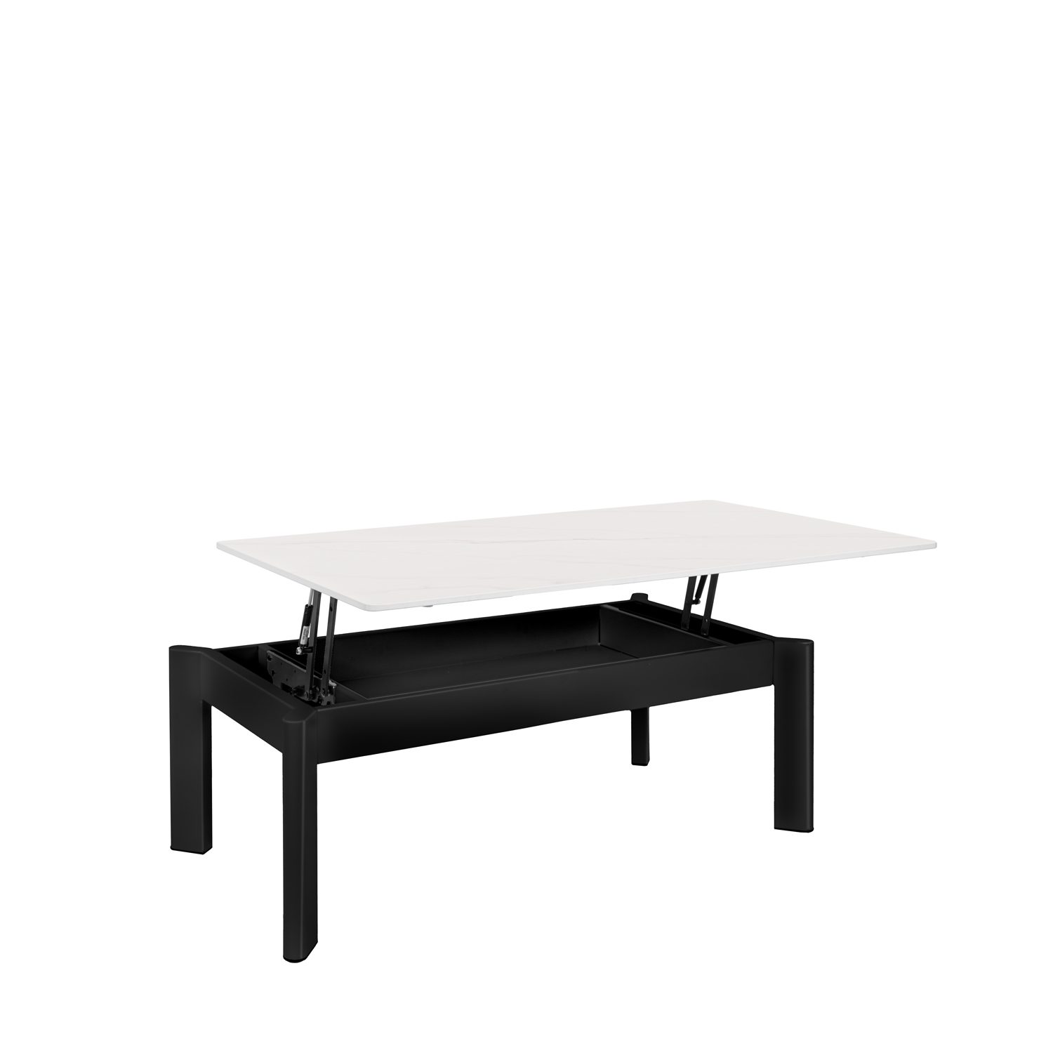 La mesa de centro elevable ROLAND combina funcionalidad y estilo con una estética contemporánea que se adapta con facilidad a distintos tipos de interior. Su tapa de porcelánico de 12 mm está disponible en cuatro elegantes acabados —travertino, blanco, negro y gris—, permitiendo múltiples combinaciones decorativas. Cada opción se complementa con una estructura metálica robusta: en color negro para la mayoría de versiones, o en beige para el modelo travertino, aportando un toque más cálido y natural.
