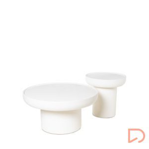 - Esta mesita está fabricada con madera de mango, y su acabado imitando a cemento le proporciona una estética sofisticada.