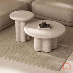 La mesa de centro LUIGI destaca por su diseño elegante y refinado, que combina la fuerza del microcemento con la delicadeza visual del efecto mármol travertino. Esta combinación de materiales otorga a la pieza un carácter escultórico que captura la atención sin necesidad de excesos decorativos.