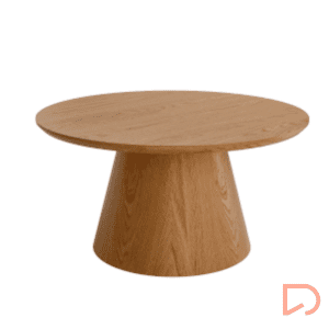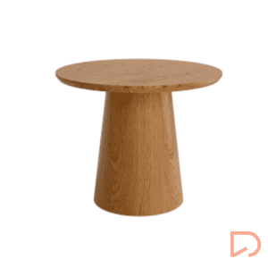- Mesas auxiliares redondas de madera de roble, con sobre biselado de 25mm.