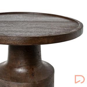 - Fabricada en madera de mango, su superficie exhibe las ricas vetas y tonalidades cálidas de esta madera, aportando un toque de autenticidad y calidez a cualquier estancia.