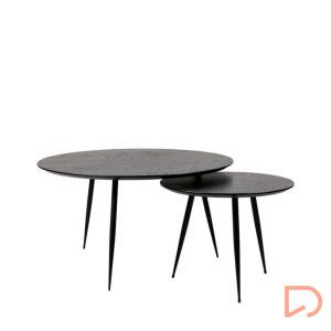 - Mesa de centro redonda con tapa de ø 80 cm en chapa tintada negra y patas cónicas metal negro. Perfecta para acompañar a la mesa de centro Ralf negra.