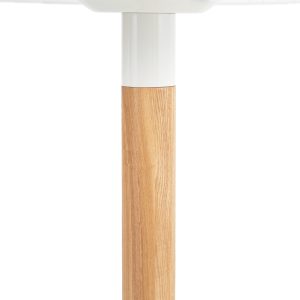 - Mesa con tapa ø 100 cm y espesor de 20 mm, lacado blanco y pata central de madera y metal.